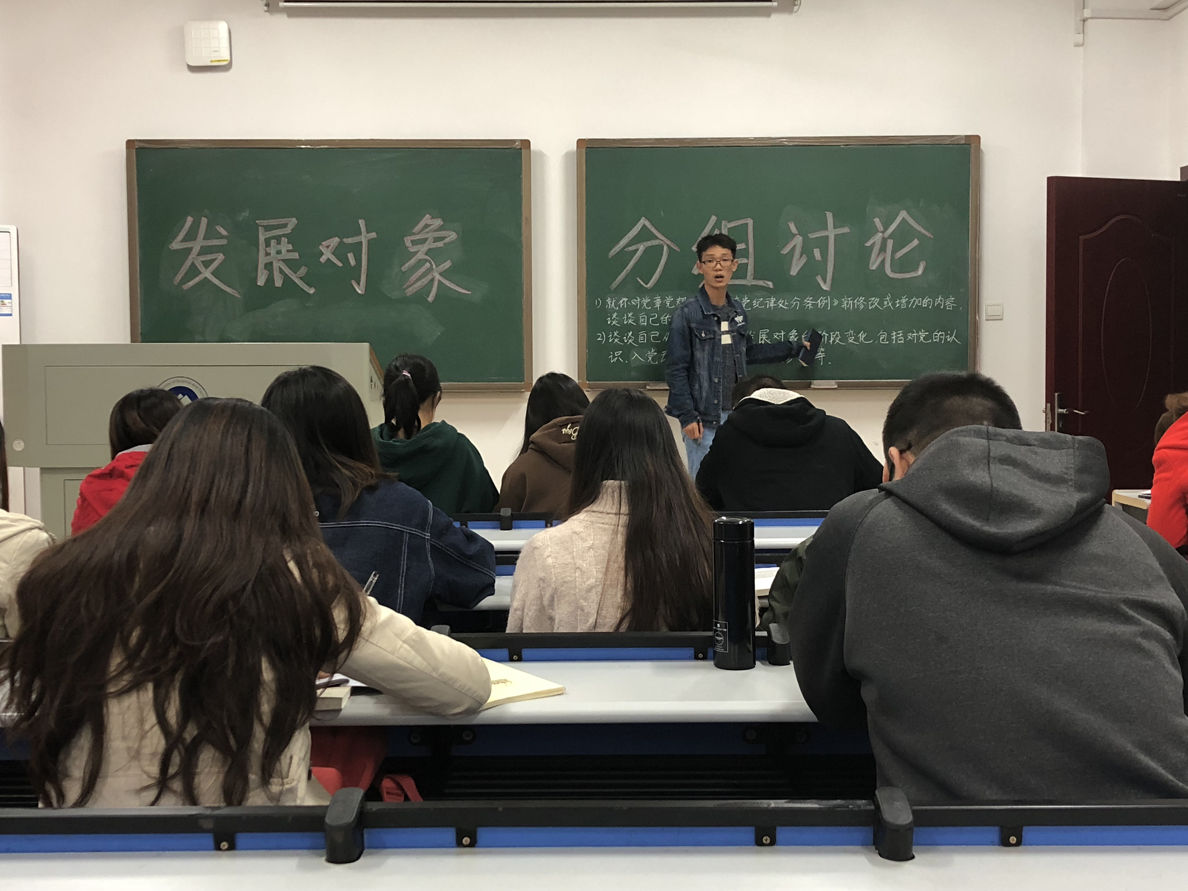 学生党员张志勇将分组讨论的问题总结为以下两点:一、发表自己对党章党规《中国共产党纪律处分条例》新改动的感受与理解;二、谈自己从入党积极分子到发展对象的阶段变化。分组讨论的模式为:各小组先讨论20分钟,再每组派代表上台发言,并由各组长记录其小组发言情况。