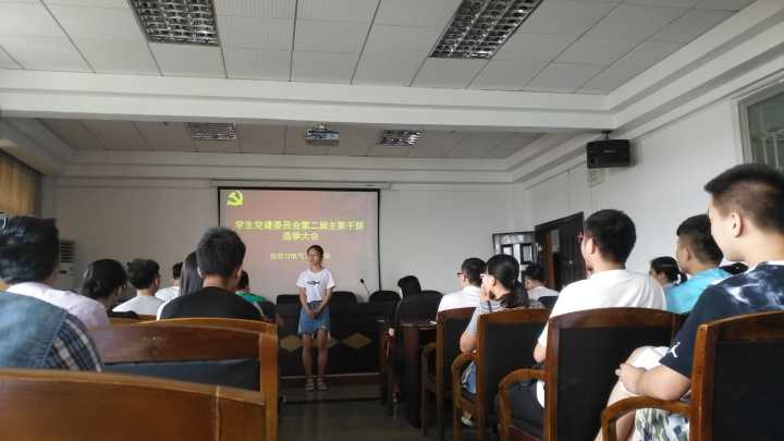 为进一步充实和完善学生党员干部队伍,充分发挥学生党员干部在学生自我管理、自我教育、自我服务中的作用,太阳成tyc33455cc于6月9日中午12点半在信息楼417面向16级所有学生召开了学生太阳成集团委员会主要干部换届选拔大会。担任大会的评委有学生党建会书记兼15级辅导员肖善芳及现任党建会全体学生干部。