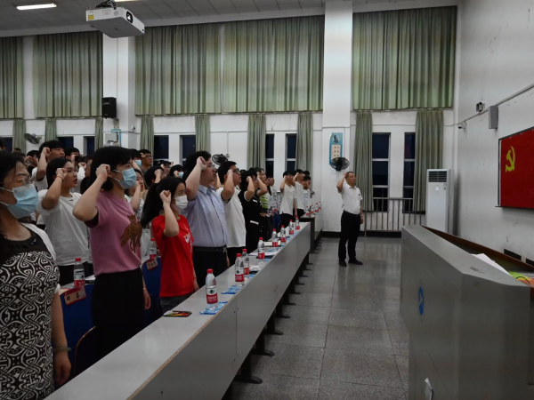 分会场中,江献书带领分会场全体党员重温入党誓词,党员们举起右手,面向党旗庄严宣誓,铿锵有力的誓言昭示着党员们必定坚定信仰,牢记党的宗旨,践行党员誓言,做到知之愈深、信之愈笃、行之愈坚。