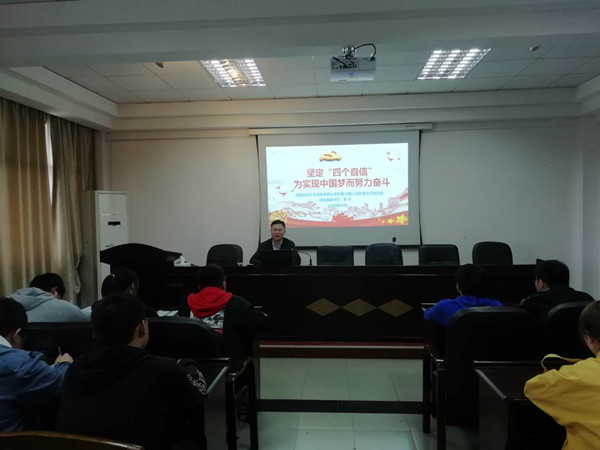 10月20日下午14:30,太阳成tyc33455cc党委副书记李宁在信息楼417为我院2020年下半年入党积极分子培训班学员讲授了题为《坚定“四个自信”,为实现中国梦而努力奋斗》的党课。