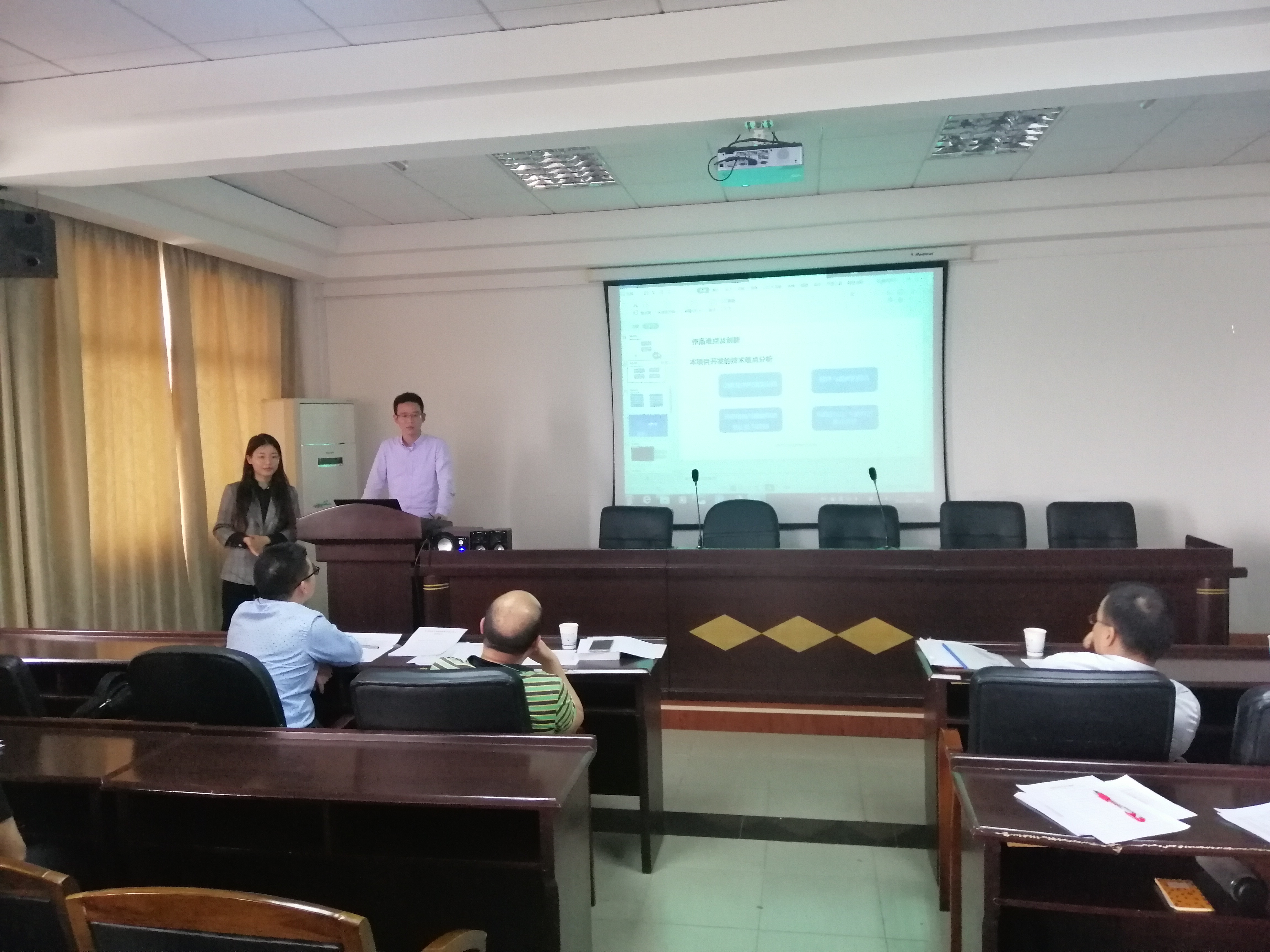 本次比赛分为两个阶段,第一阶段由队员们分工协作,做出本次大赛的电子作品并撰写技术论文,第二阶段则是进行技术论文的答辩。4月23日下午3时,我院于信息楼417学术报告厅顺利举行了本次研究生电子设计大赛技术论文的答辩,参赛队员们根据抽签顺序依次上台展示作品,并进行技术论文的汇报以及答辩。台下评委老师对每份作品进行评阅后,就作品的可行性提出了相关问题,对选手们的创造性思维给予了充分的肯定,但也指出了其不足的地方,并勉励广大参赛队员要勤思考、勤动手,为参加2019年中国研究生电子设计大赛做准备。