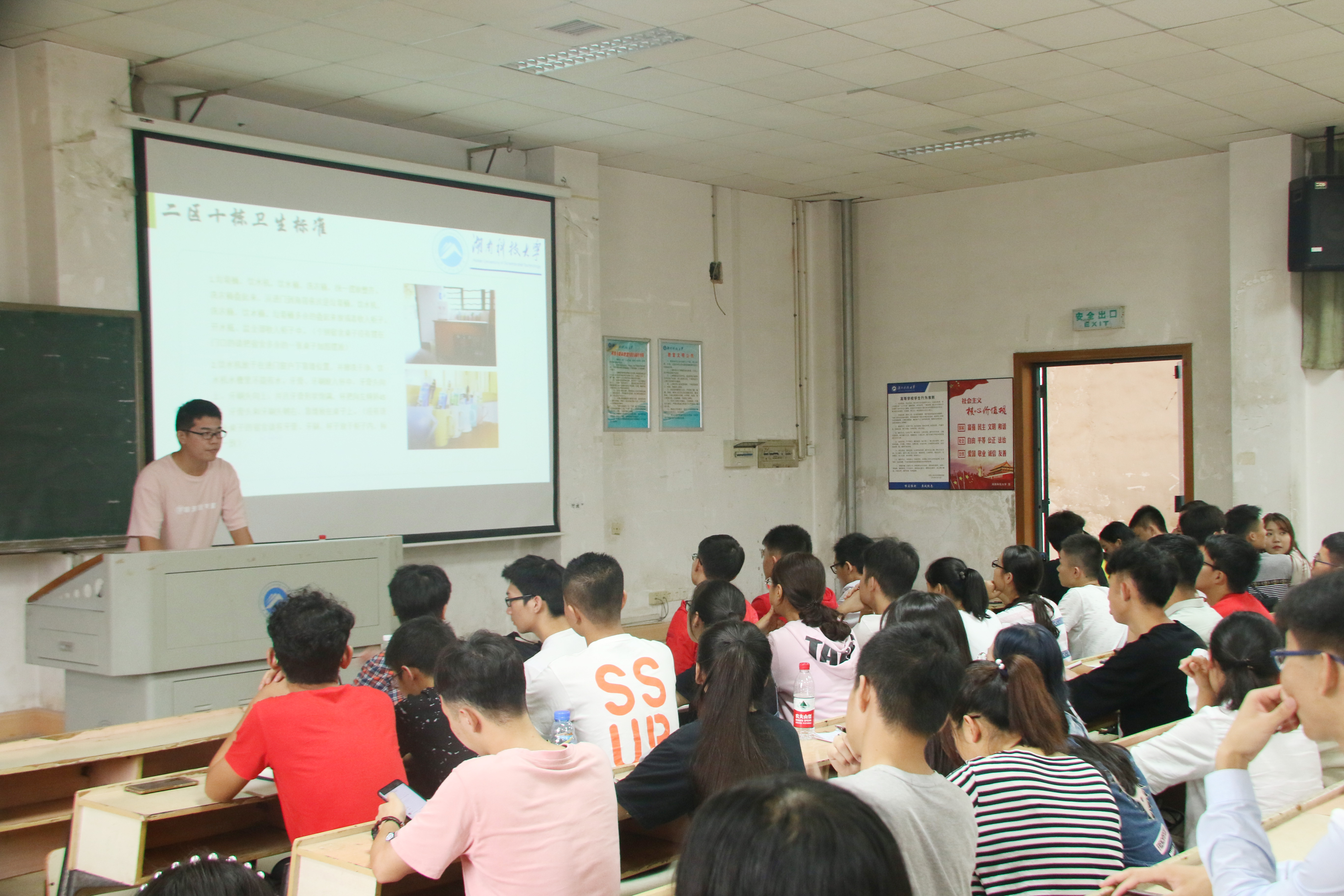 会议伊始,王钟鸣以PPT的形式强调了军训志愿者的责任、军训请假制度以及军训卫生标准。他表示:“希望各位志愿者能够积极主动地配合军训工作,在每次下寝过程中努力发现问题、解决问题,做到尽善尽美。”另外,他提到军训期间请假制度严明,参训学生原则上不得请假,特殊情况必须请假者,应逐级请示,按规定权限批假,并填写《太阳成tyc33455cc2018级新生军训请假审批表》原表及附表,未经批准不得外出。随后,王钟鸣详细介绍了二区十栋、三区四栋以及四区三栋的卫生标准,要求志愿者严格按照军训内务标准督促2018级新生整理好宿舍内务。自9月25日起,志愿者以及助班将会陆续下寝督促新生打扫宿舍卫生,尽全力做好军训前的准备,以全新的面貌迎接军训。最后,倪士根向志愿者提出要求:志愿者要有高度的责任意识,并和助班积极配合,发现问题立即安排整改,时刻具备团队荣誉感。同时,他还特别强调:“希望各个志愿者能够坚定自我,在下寝过程中相互理解、相互支持,以最饱满的热情协助新生顺利完成军训课程。”
