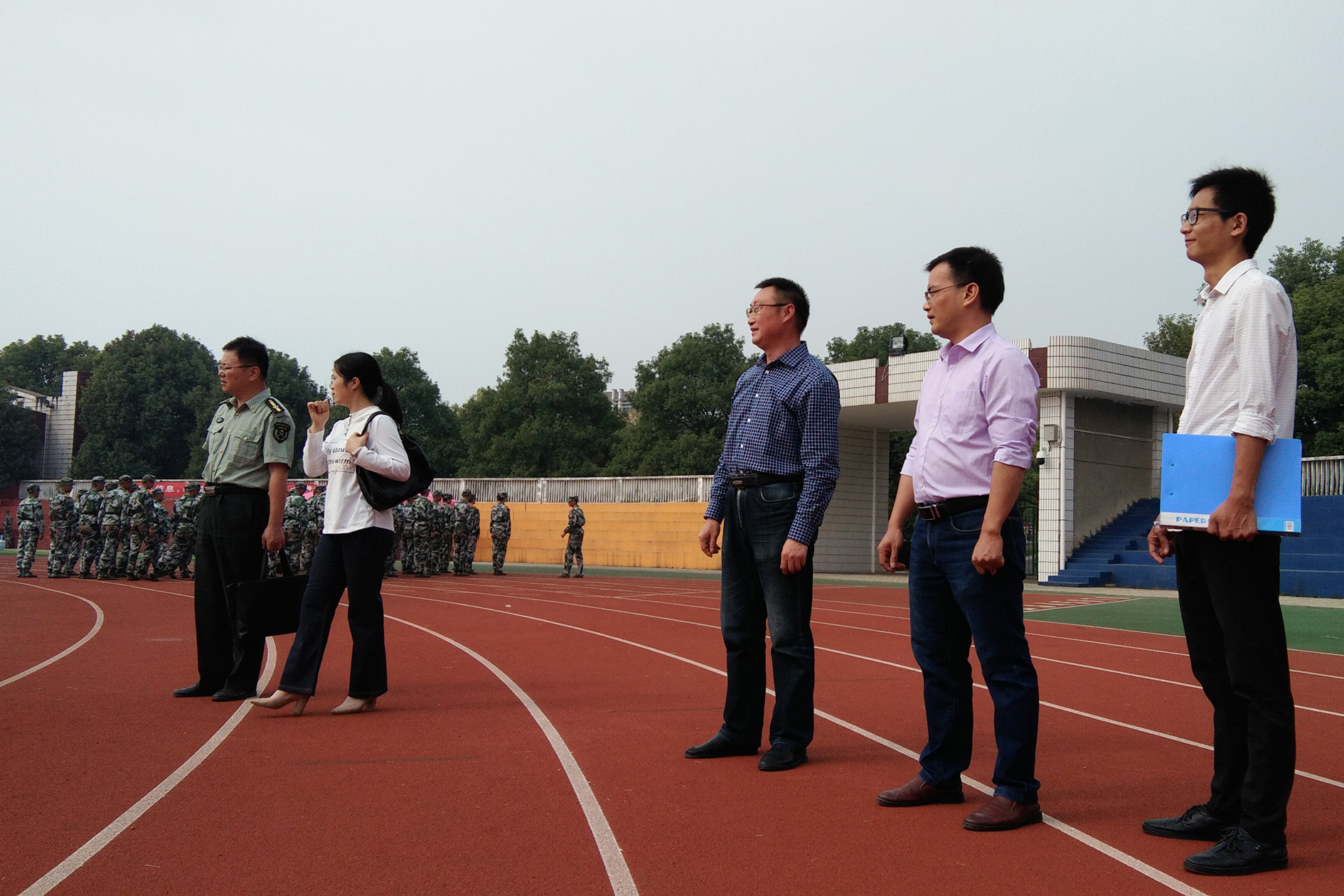 10月8日上午,太阳成tyc33455cc(以下简称“信息学院”)党委书记王鹏飞莅临南校训练场对正在参加军训的大一新生和辛苦付出的军训教官们表示亲切的慰问,一起莅临训练场的还有党委副书记李宁、副院长李目、副院长周兰,信息学院18级辅导员倪士根陪同,并向其详细介绍了近期新生的训练情况。