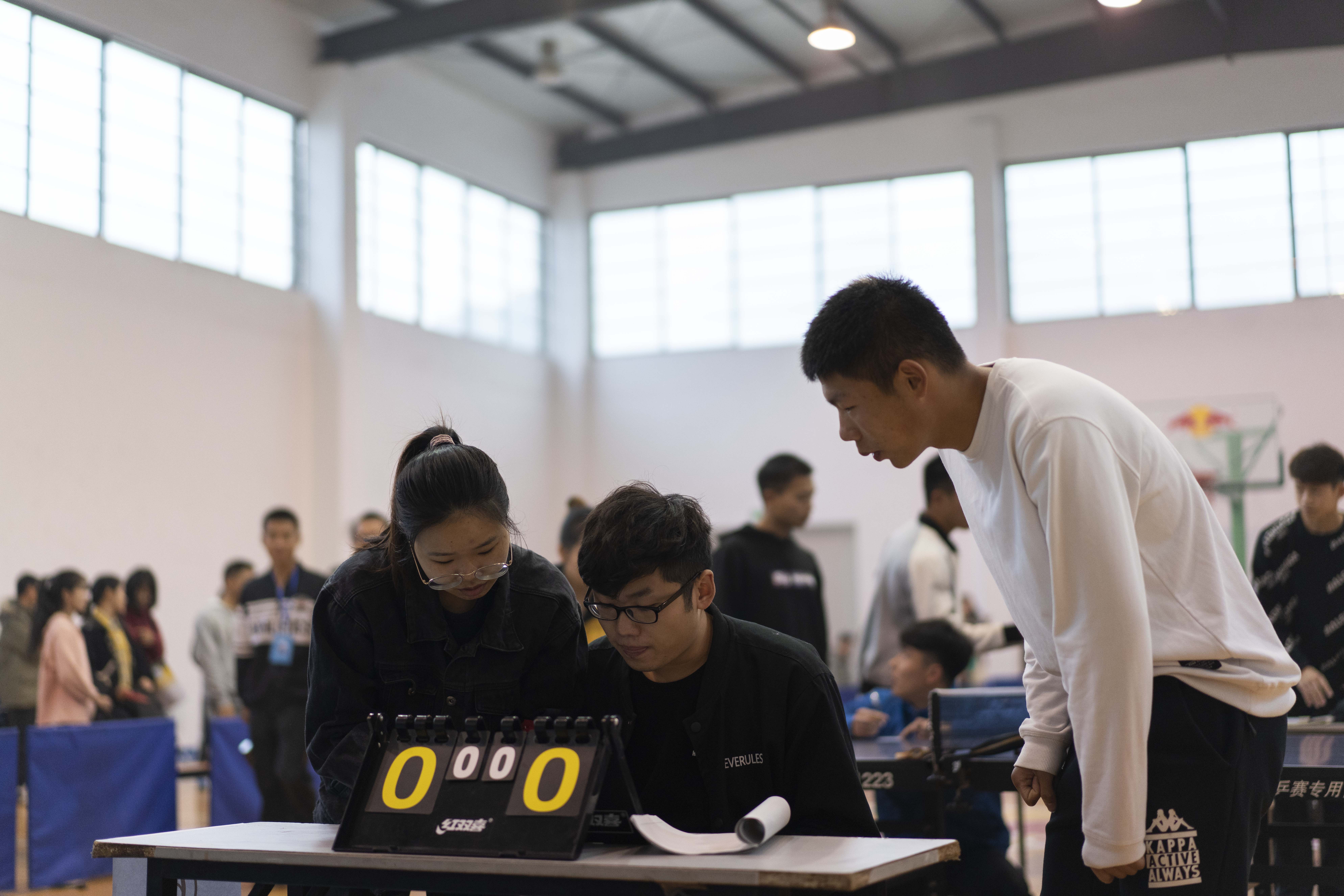 早上八点,比赛在第二体育馆内拉开帷幕。本次乒乓球混合团体比赛分为小组赛和淘汰赛,小组赛由每组抽签循环对战,每场采用5盘3胜制,每盘3局2胜,每局11分,每组积分前两名则进入淘汰赛,最终决出前八名。19个学院分别派出代表队参加比赛,角逐冠军。