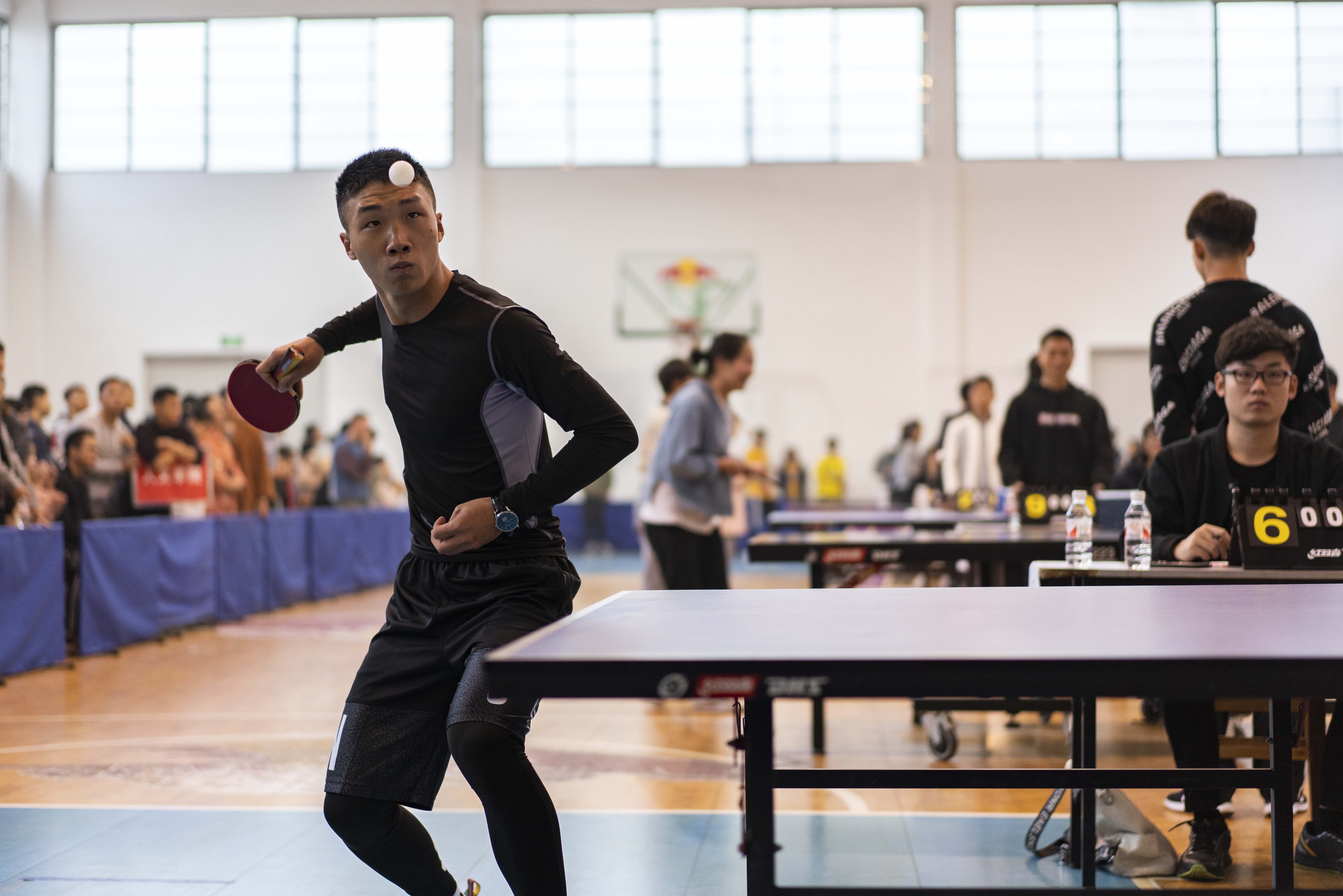 比赛开始,现场气氛持续热烈,球桌上的乒乓声与观众席的呐喊声交相呼应。选手冯健聪从容不惊,力求发球击球“快狠准”,不留给对方喘息的余地。只见球在空中划过一道完美的抛物线,向对方飞快击去,弹起,落地!作为计算机科学与工程学院新生的他,两次大比分直接拿下比赛,他心情无比激动:“小时候我就特别喜欢看乒乓球比赛,我喜爱它带给我的激情,现在,我也能继续与乒乓球同行!”