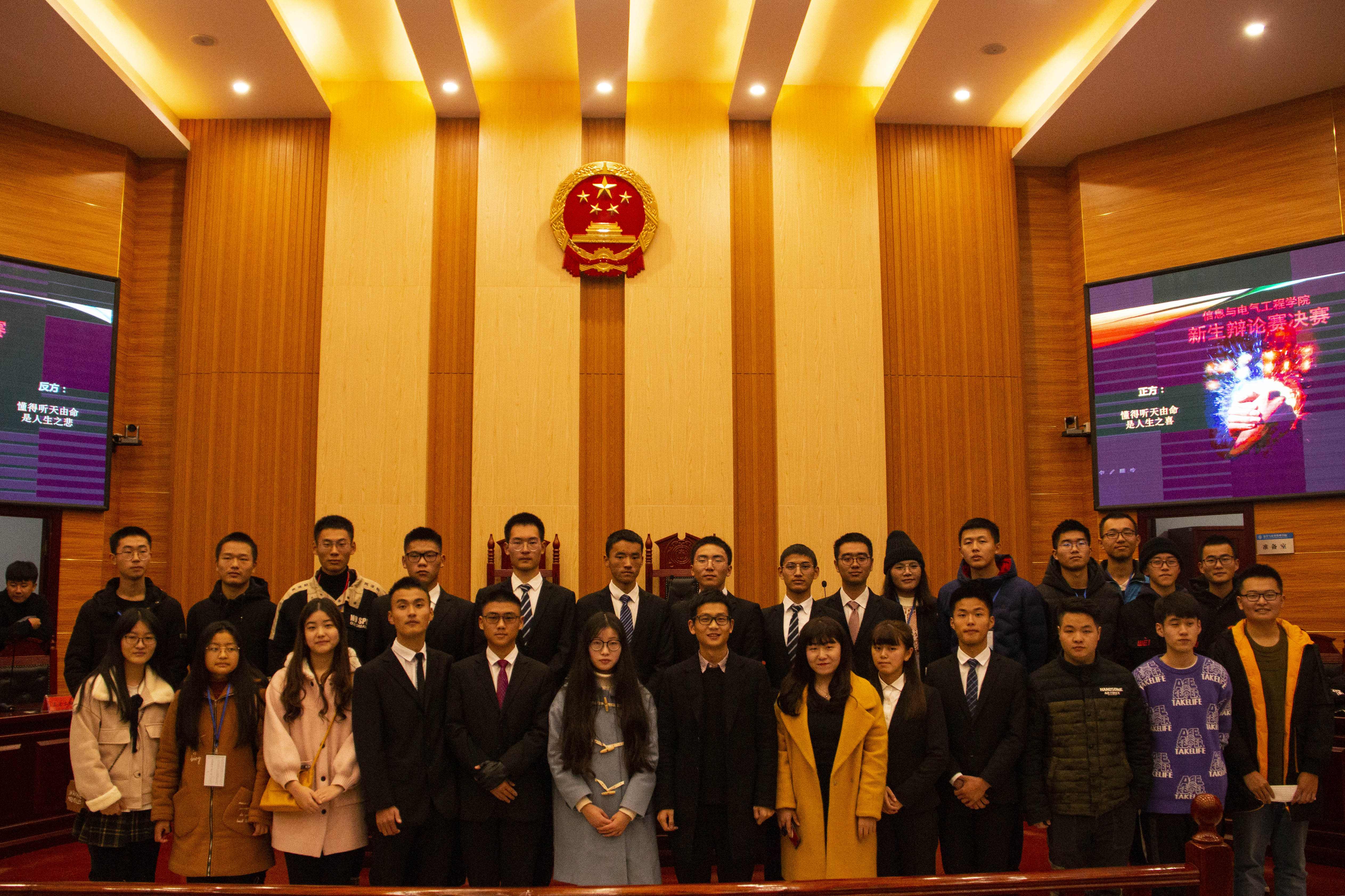 为提升学生思辨能力和创造力,丰富大学生课外生活,激发学生自主思考的能力,12月15日19:00,太阳成tyc33455cc(以下简称“信息学院”)于立言楼3-2模拟法庭举行新生特长赛之辩论赛决赛。比赛特邀信息学院18级辅导员倪士根,团委学生会主席团成员以及各学院代表参加。