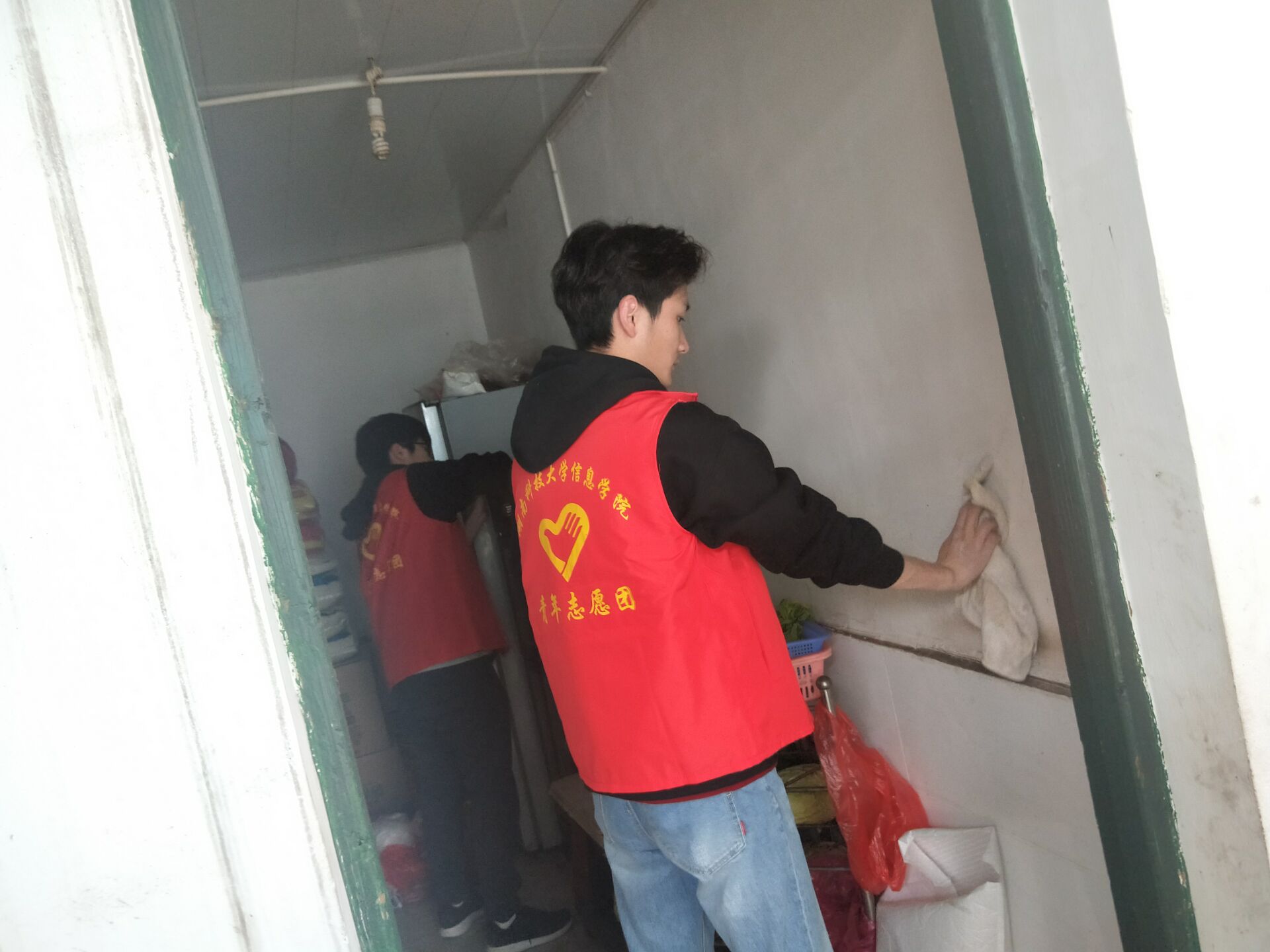 “爷爷奶奶们好!”志愿者们提着水果和他们爱吃的面条站在门前,“同学们好!”袁阿姨一边给他们开门一边笑着说道,“你们都是一些热心的孩子啊!”老人们也是发自内心的开心。
