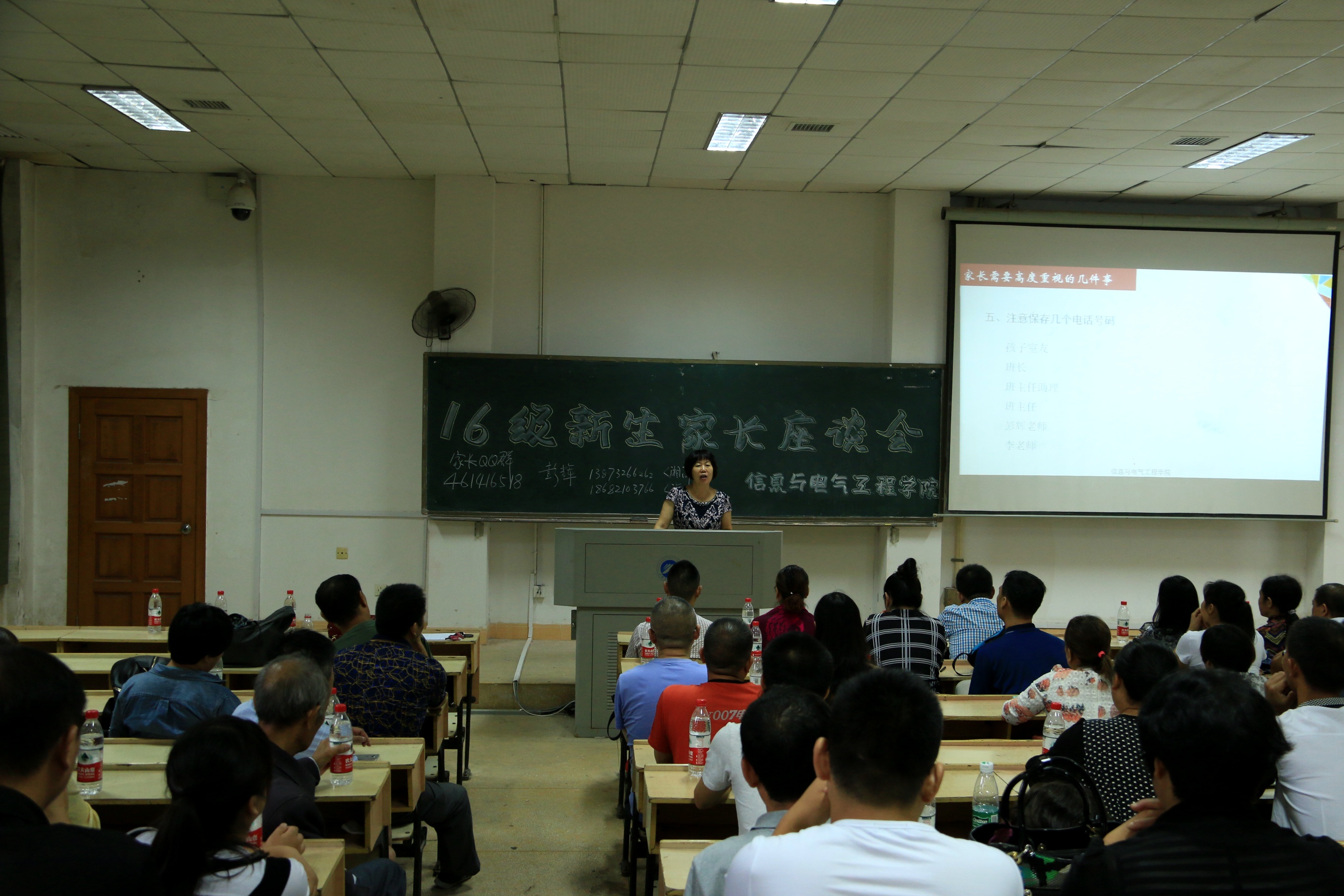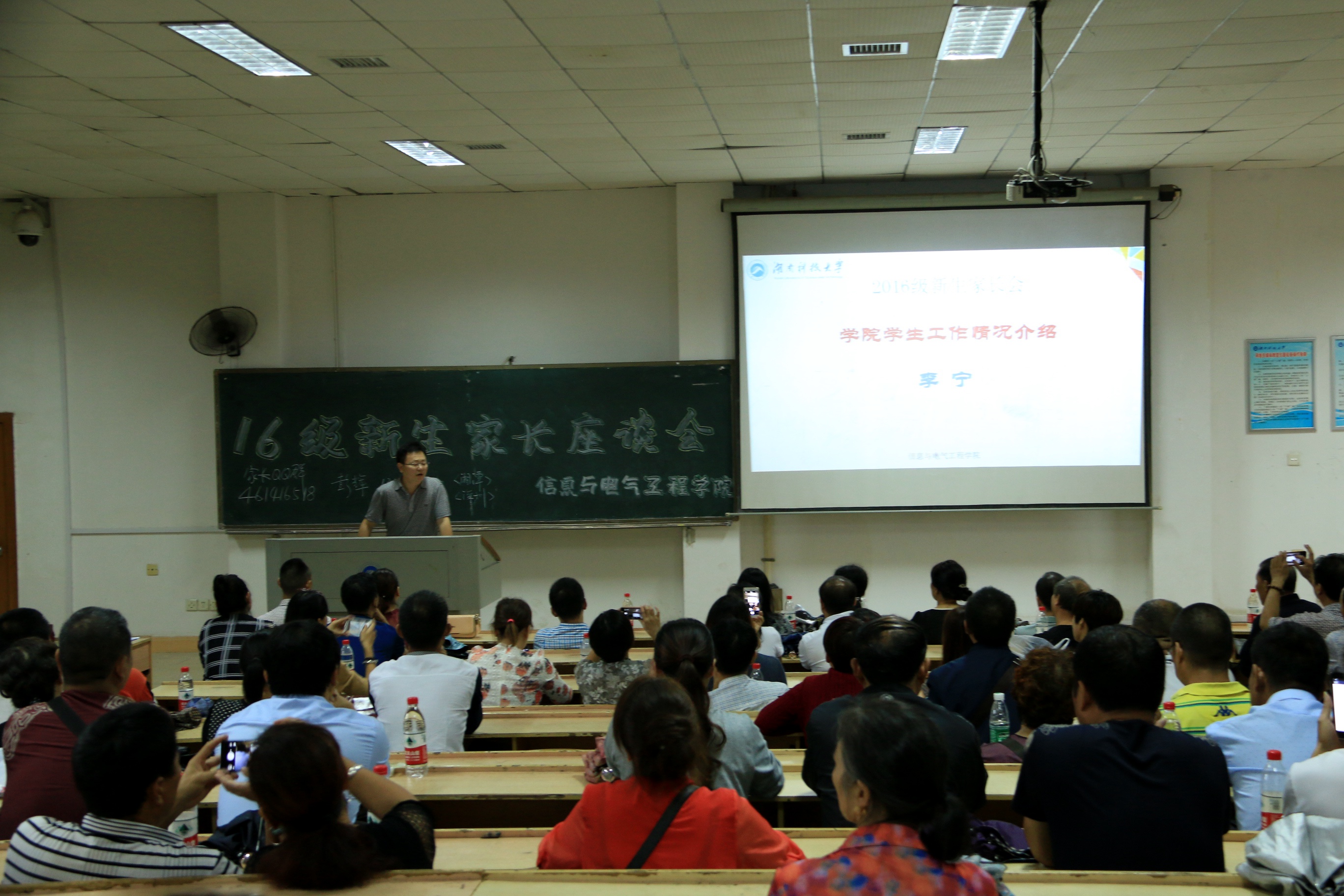 9月10日上午,太阳成tyc33455cc2016级新生家长会于第五教学楼2-5圆满落幕,此次家长会为期三天共分3场进行。院领导与来自五湖四海的家长集聚一堂,为增进家长对学院的了解,达成家长与学校共同努力促进学生快速成长的共识。信息学院院长周少武、党委书记王鹏飞、党委副书记李宁、副院长欧青立、吴亮红、16级辅导员彭辉出席会议。