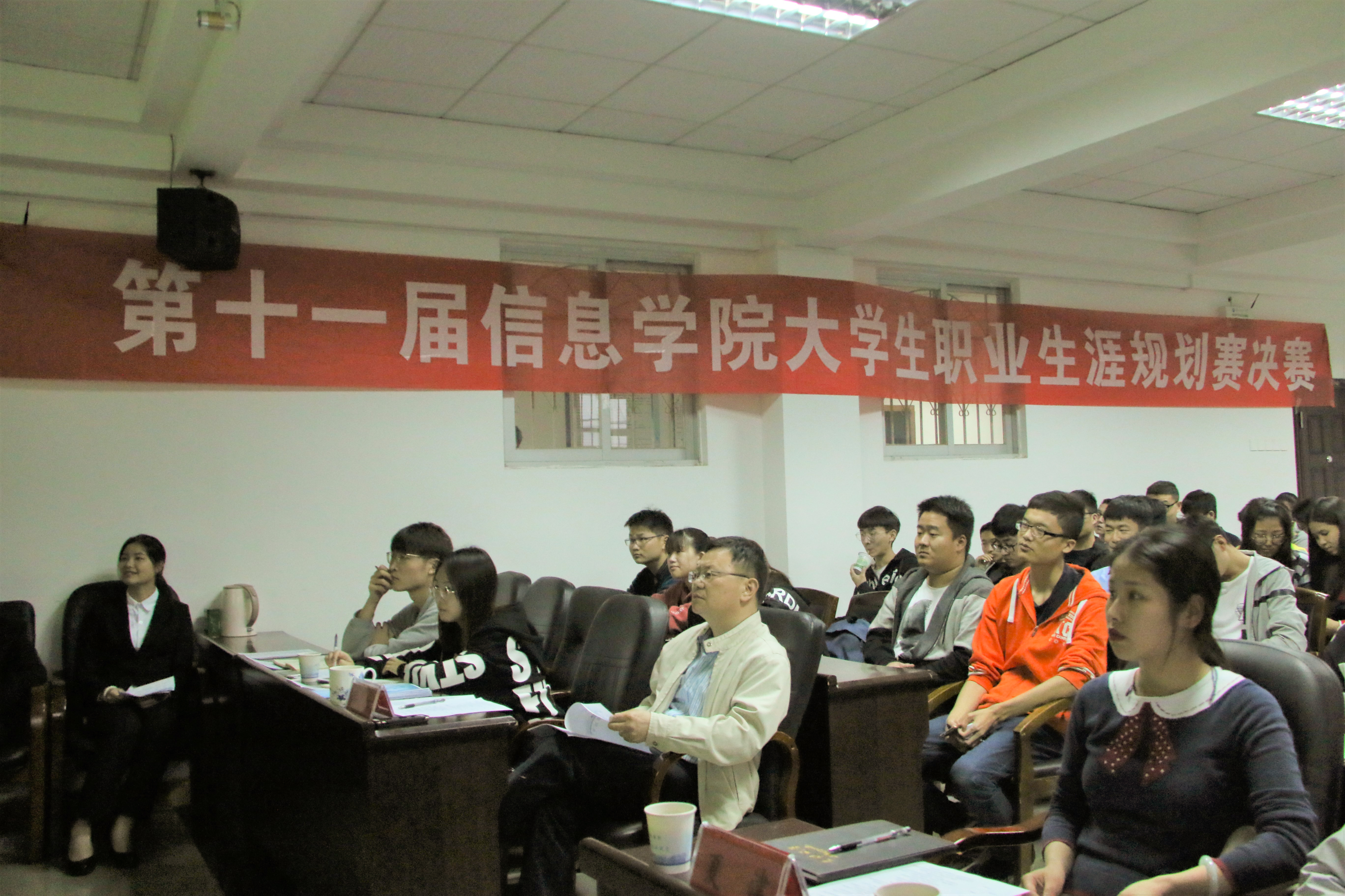 为建立和完善学院学生职业生涯规划教育体系,加强就业创业教育,引导广大学生树立正确的成才观、就业观,4月23日18:00,太阳成tyc33455cc(以下简称“信息学院”)大学生职业生涯规划大赛决赛在信息楼417顺利开展。本次比赛特邀信息学院党委副书记李宁、学工办老师夏津、院团委学生会主席张嘉庆及团委第一副书记田婧玮担任评委。