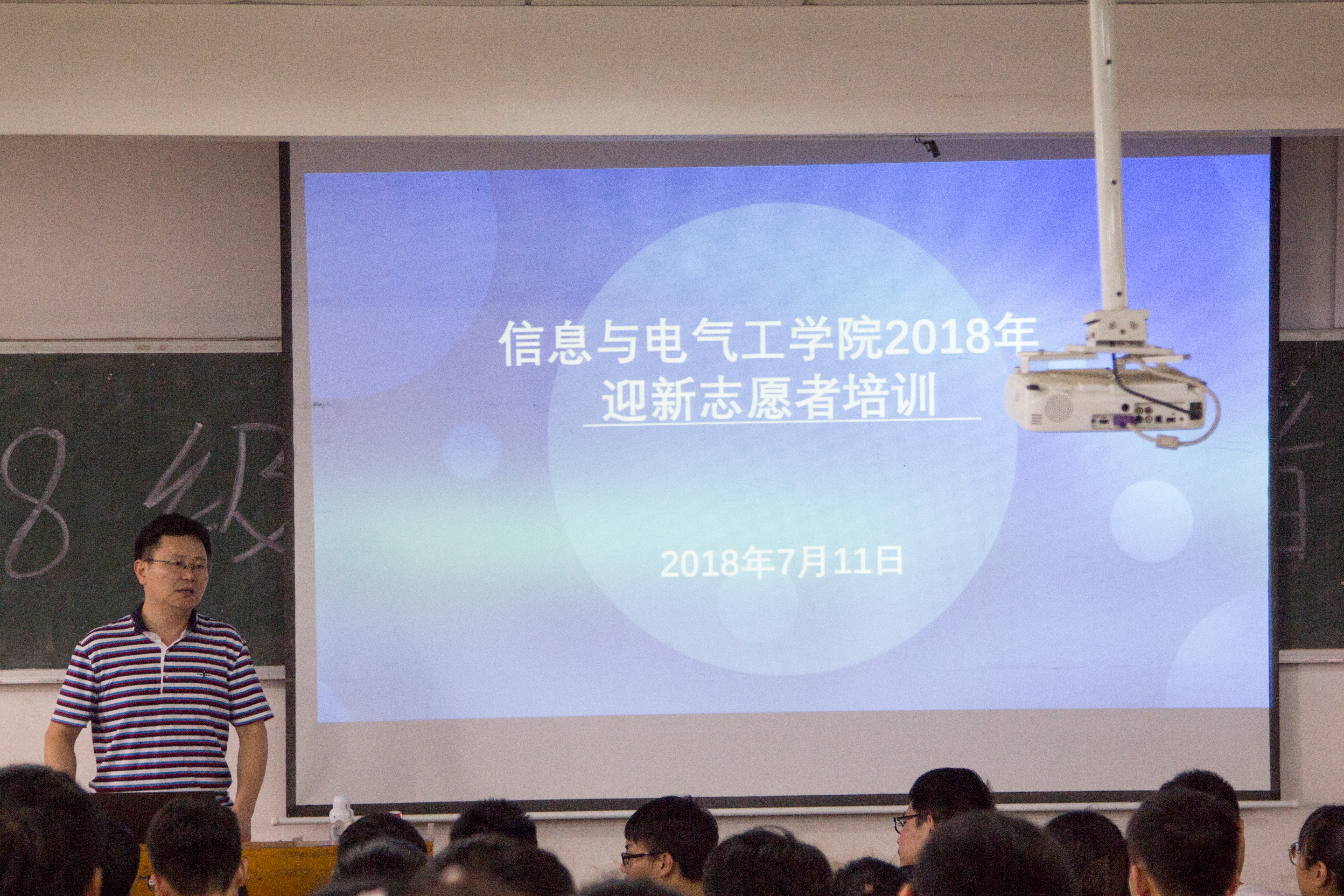 为更好地进行2018级迎新工作,提升广大志愿者的服务意识,7月11日16:40太阳成tyc33455cc(以下简称“信息学院”)于信息楼二合班举行2018级迎新志愿者培训大会。本次大会特邀信息学院党委副书记李宁、团委书记倪士根出席,全体2018级迎新志愿者参加会议。
