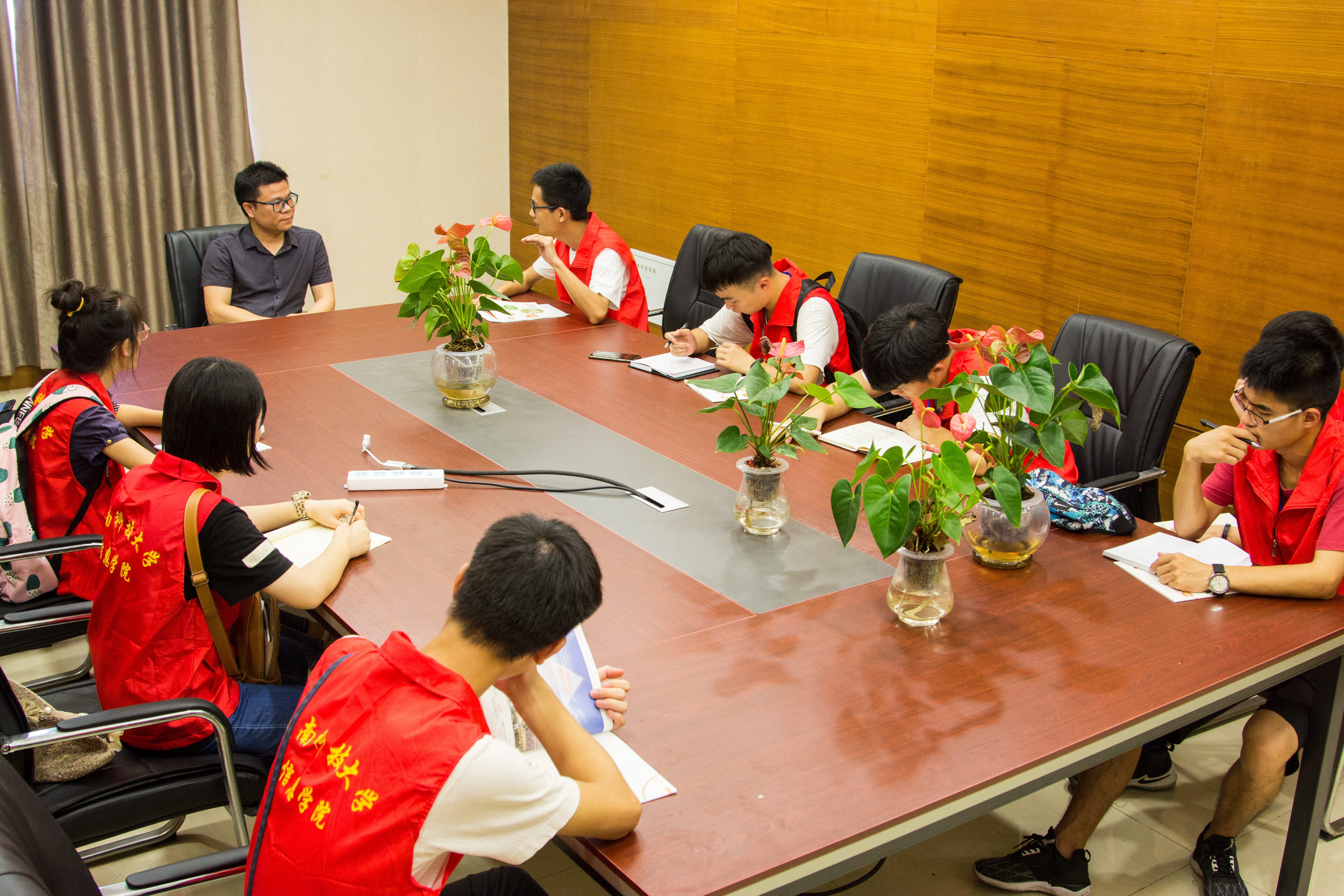 在创业基地的工作人员陈宇的带领下,小队人员先后参观了内特环保有限公司和湘潭鼎惠数据科技有限公司,并有幸得到了采访的机会。内特环保创始人之一袁宏宾以他30年的工作经验教导大学生:“我们要在工作中寻找快乐,脚踏实地,还要成熟稳重,不能好高骛远。”他特别强调,企业十分需要有活跃思维的人才,要注重创新,跟上时代的变化。湘潭鼎惠数据科技有限公司的总经理唐斌积极鼓励小队人员提问,并为他们一一解答。他认为当代大学生一定要有不怕困难、热爱学习、有上进心和坚持不懈的品质。
