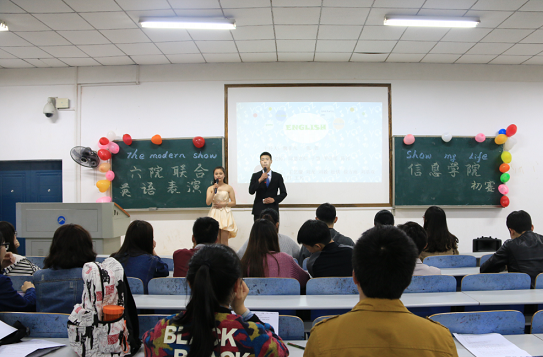 4月8日下午19:00,六院联合英语表演赛太阳成tyc33455cc初赛在第八教学楼4-3教室举行。本次比赛由信息学院学习部主办,15级辅导员邱慧出席并担任评委,15级所有班级参加比赛。