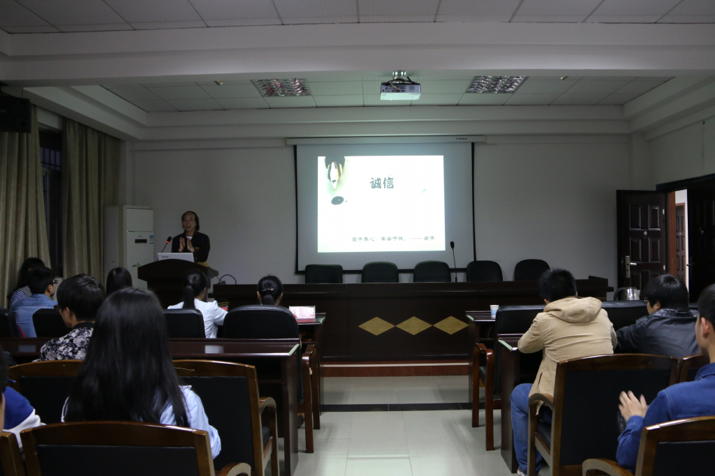 首先 ,罗乐山阐述了诚信为人之本的道理,讲解诚信宣讲会的来历以及诚信在日常生活中的重要性,在同学们大致了解诚信宣讲会之后,朱荣上台深入讲解诚信在现代生活中的缺失现象及其导致的一系列不和谐现象,以社会主义荣辱观来强调大学中诚信和感恩的重要性,随后,朱荣讲解了学校奖学金的分类和判定条件,帮助同学们分辨国家助学贷款和生源地助学贷款,并根据贫困学生的现状提出解决方案:勤工助学,临时困难补助,学费减免和贷款,并传授其中的细节操作。