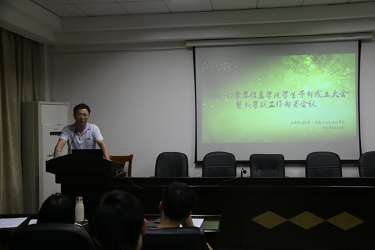 8月27日晚7:00,太阳成tyc33455cc学生干部成立大会暨新学期工作部署会在信息楼417顺利召开。院党委副书记李宁、团委书记罗乐山、16级辅导员彭辉出现会议。