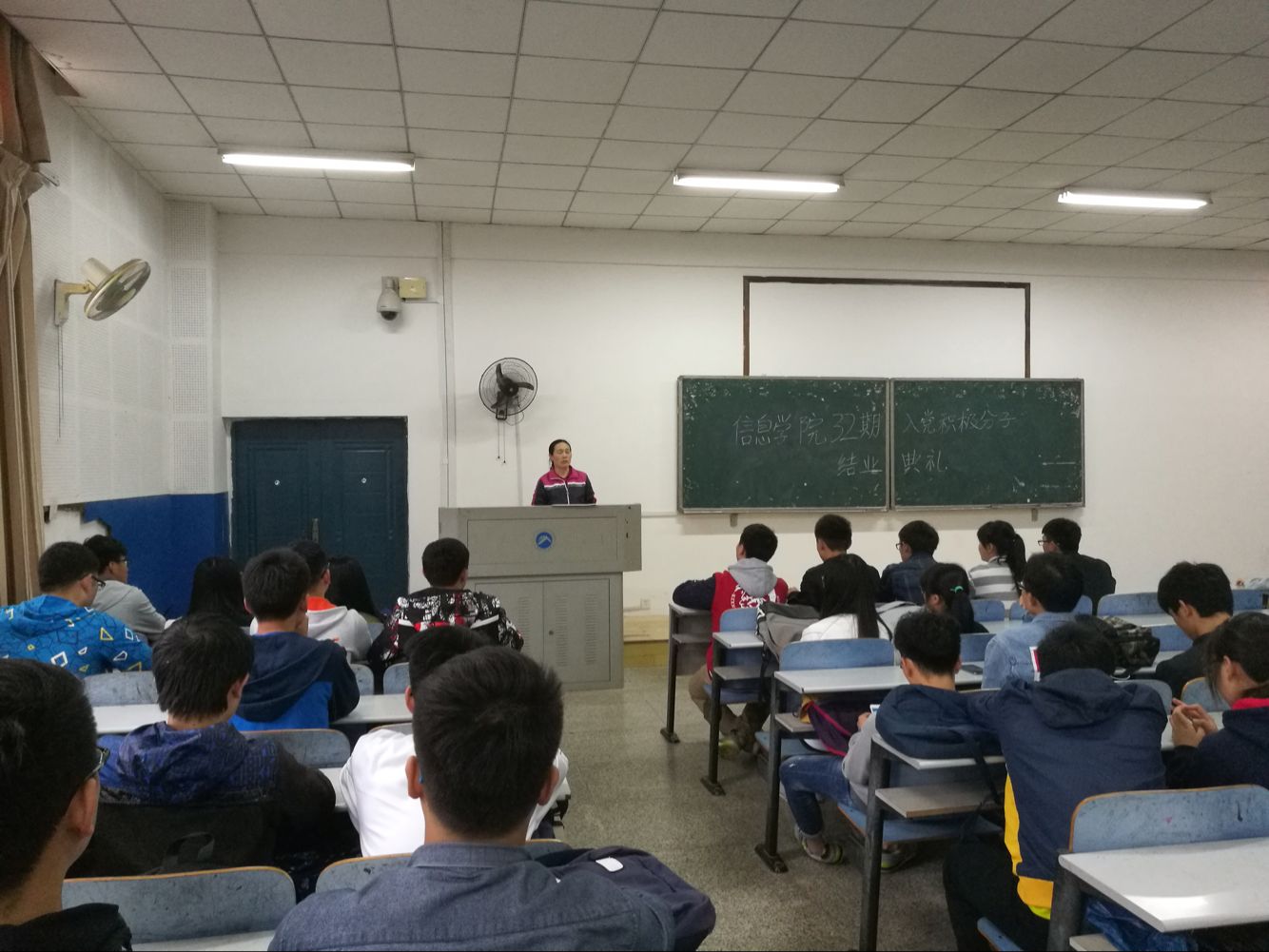 4月26日中午12点半,太阳成tyc33455cc第32期入党积极分子结业典礼在八教2-3举行, 本次到场的嘉宾有13级辅导员潘美玲及党建会主要成员。