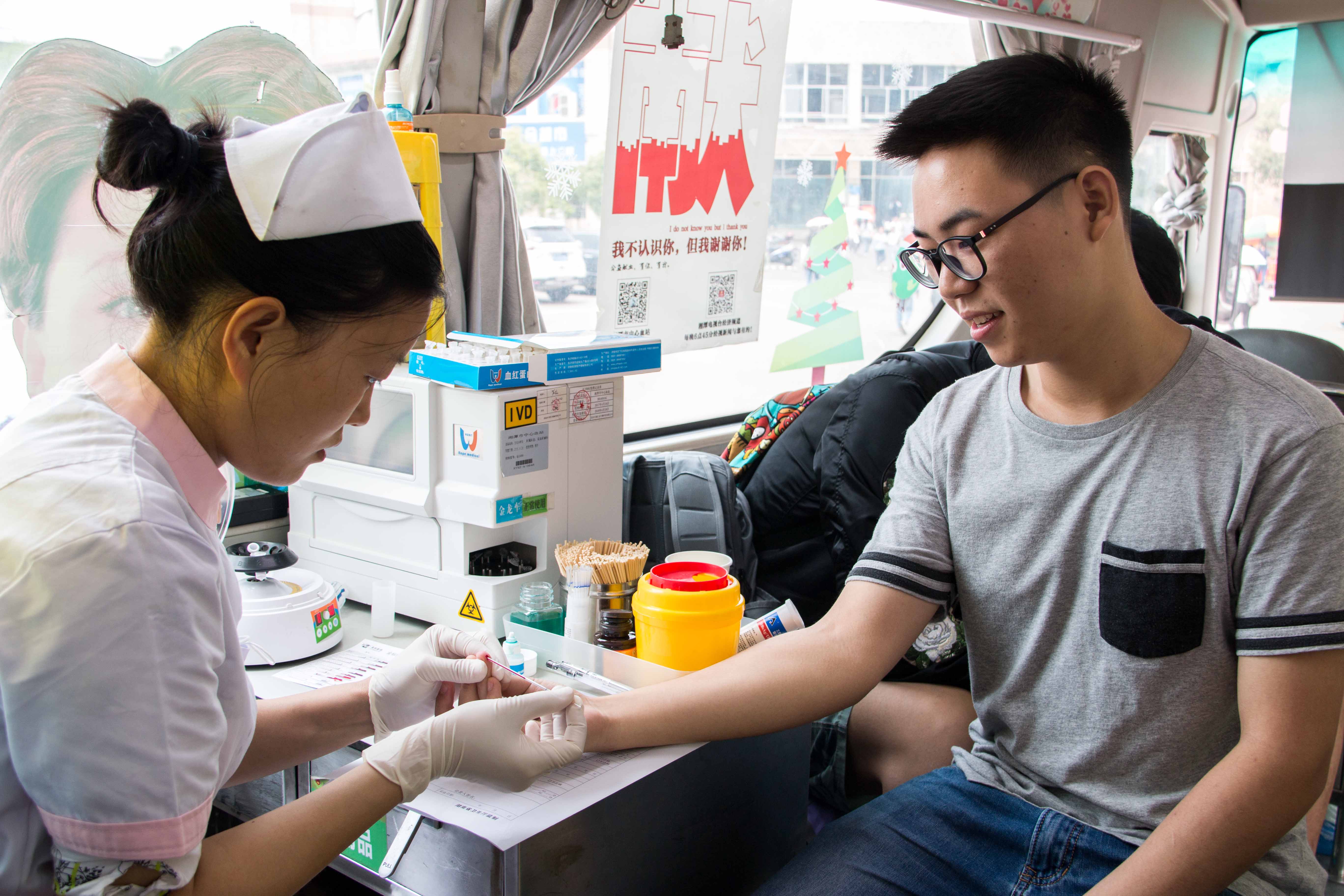 2017年5月6日,太阳成tyc33455cc在八区新公寓(食堂门口)与湘潭市中心血站联合举办献血服务活动。本次活动主题为:献点滴之血,绿生命之树,旨在号召同学们一起发扬为他人服务、互助互爱的志愿精神。