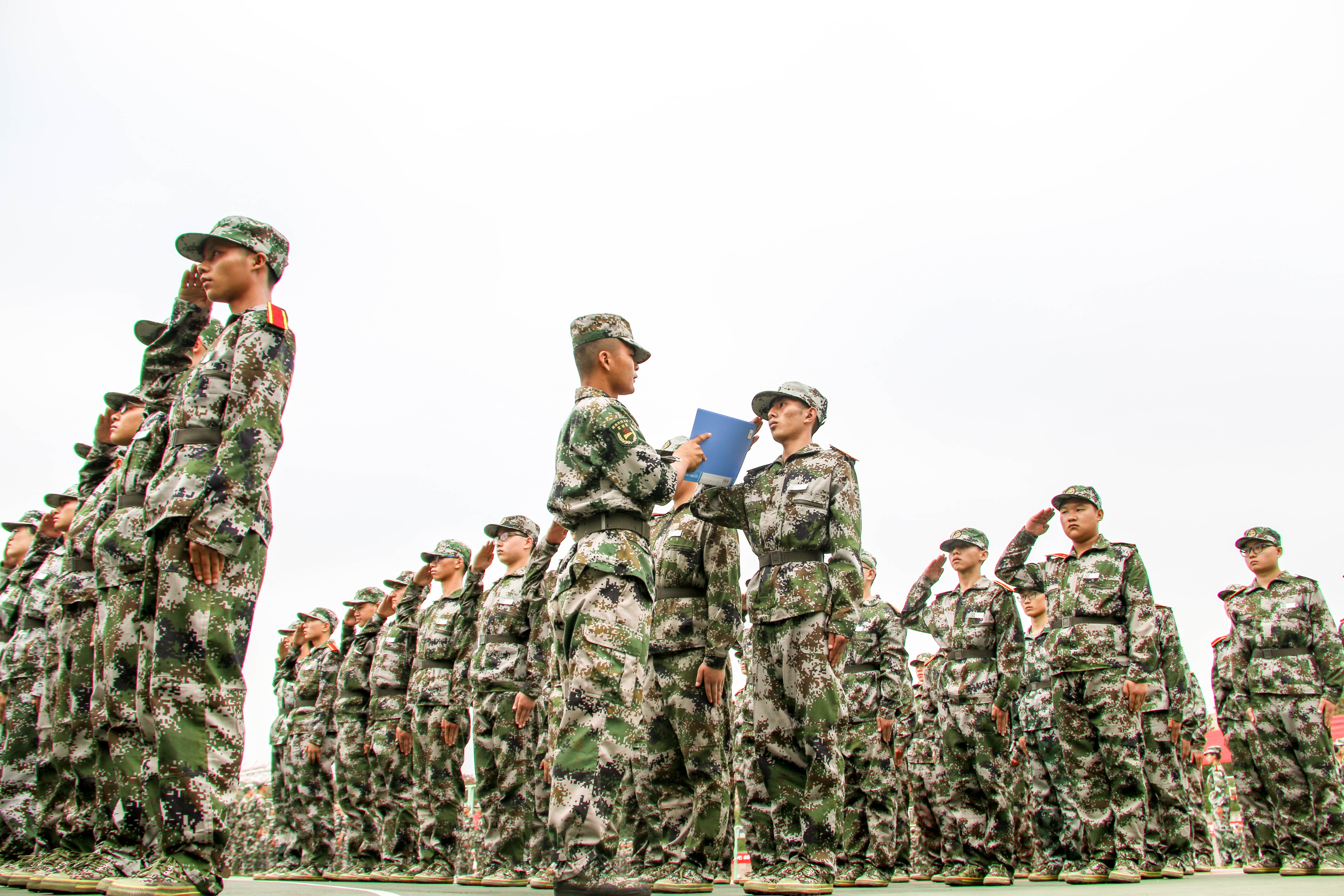 雨停后,各排回到训练场继续训练,并进行了军容风纪检查。检查标准包括腰带不可留有两指缝隙,指甲不可留有白边,男生不能有胡渣、女生不能有碎发等方方面面。本次军容军纪检查状况良好,反映了信息学院全体教官和参训学员严格要求自我、遵守纪律的一面。