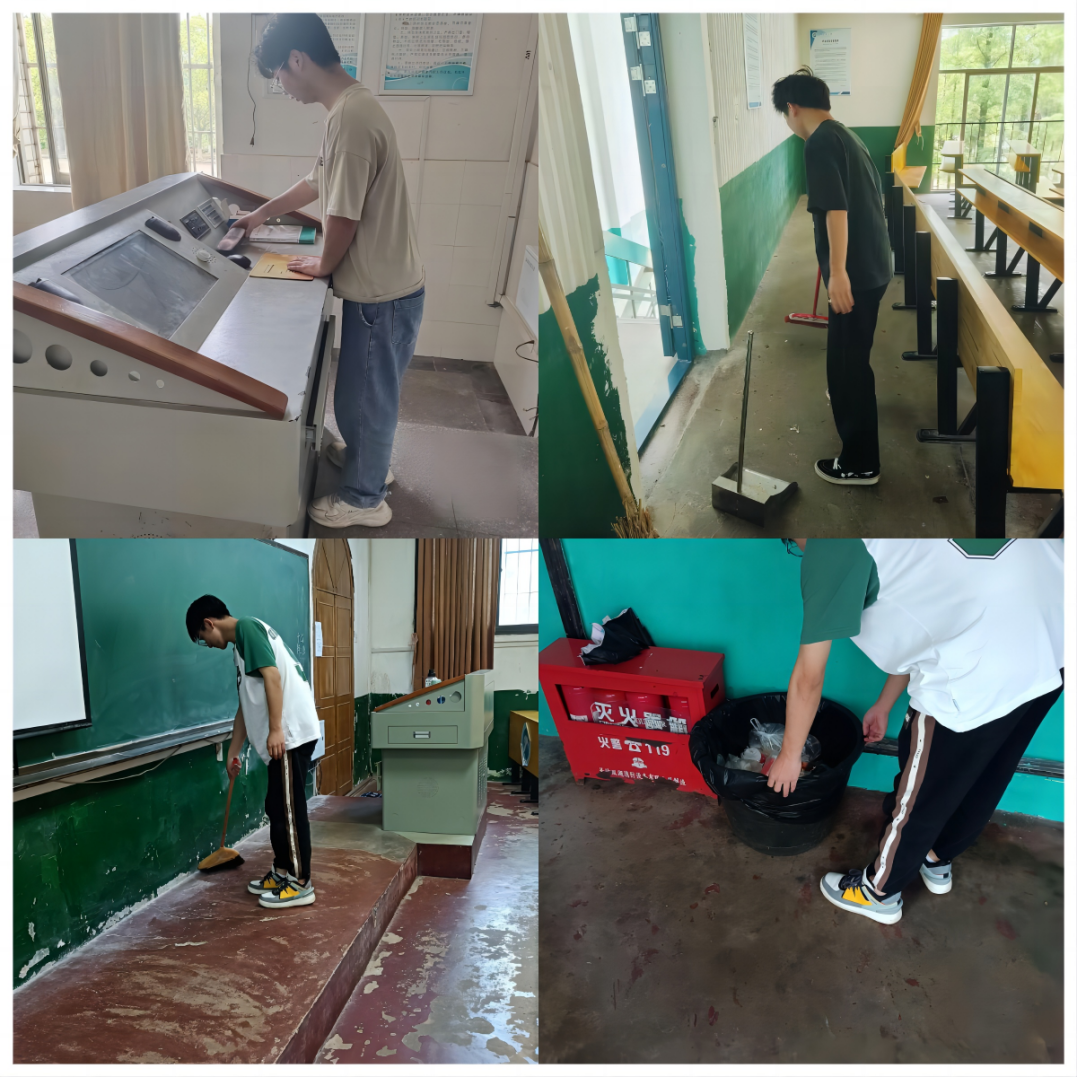 在打扫过程中,22级通信四班的柴斌同学有所感慨:“我觉得能够与大家一起劳动很光荣,可以给师生们创造出一个整洁舒适的学习生活环境。虽然有点累,但是每个人都投入到这样的劳动中,感觉非常有意义。劳动创造快乐,我喜欢劳动。”