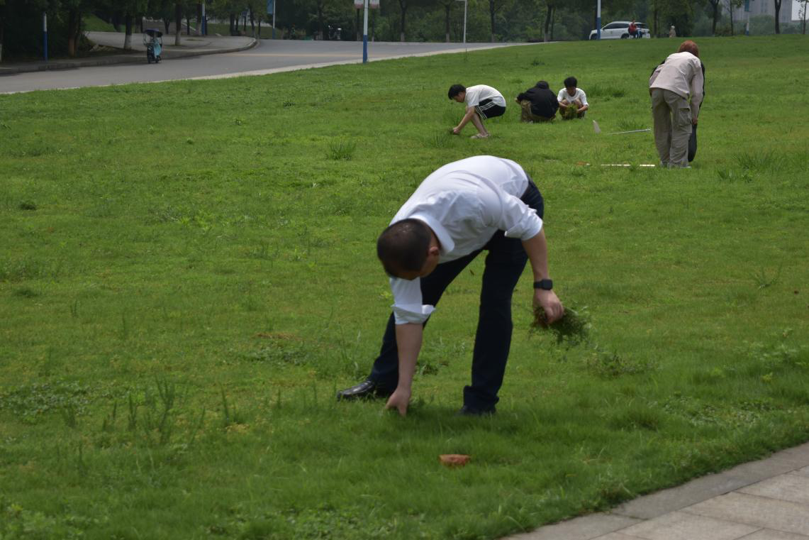 老师与同学们共同清理杂草