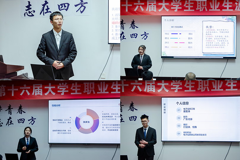 随后,大赛正式开始。八位选手通过PPT演示、演讲和答辩等环节,通过对自我认识、外部环境和职业定位的全面分析,提出了自己的职业目标、发展路径和行动规划,并从可操作性和现实意义等各方面进行了阐述。选手们思路清晰、表现从容,展现出自己独特的风格和特点。评委们针对选手们的表现进行了专业点评,提出了宝贵的建议,使选手们受益匪浅。