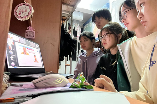 信息学子利用设备集中观看