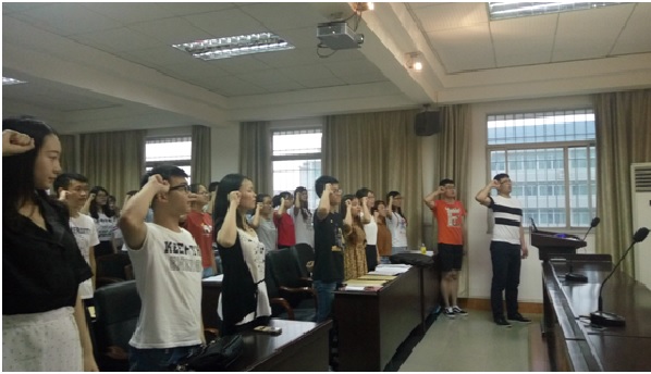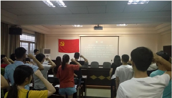 为了进一步激发党员的荣誉感、责任感和使命感,激励新党员积极投身于学校的改革建设和发展,投身于党和国家的建设事业,我院于2017年6月2日晚上7点整在信息楼417会议室举行预备党员入党宣誓仪式,由谢杨慧担任主持人。出席本次仪式的有信息学院党建会书记肖善芳、党建会相关干部以及本次发展的所有预备党员。