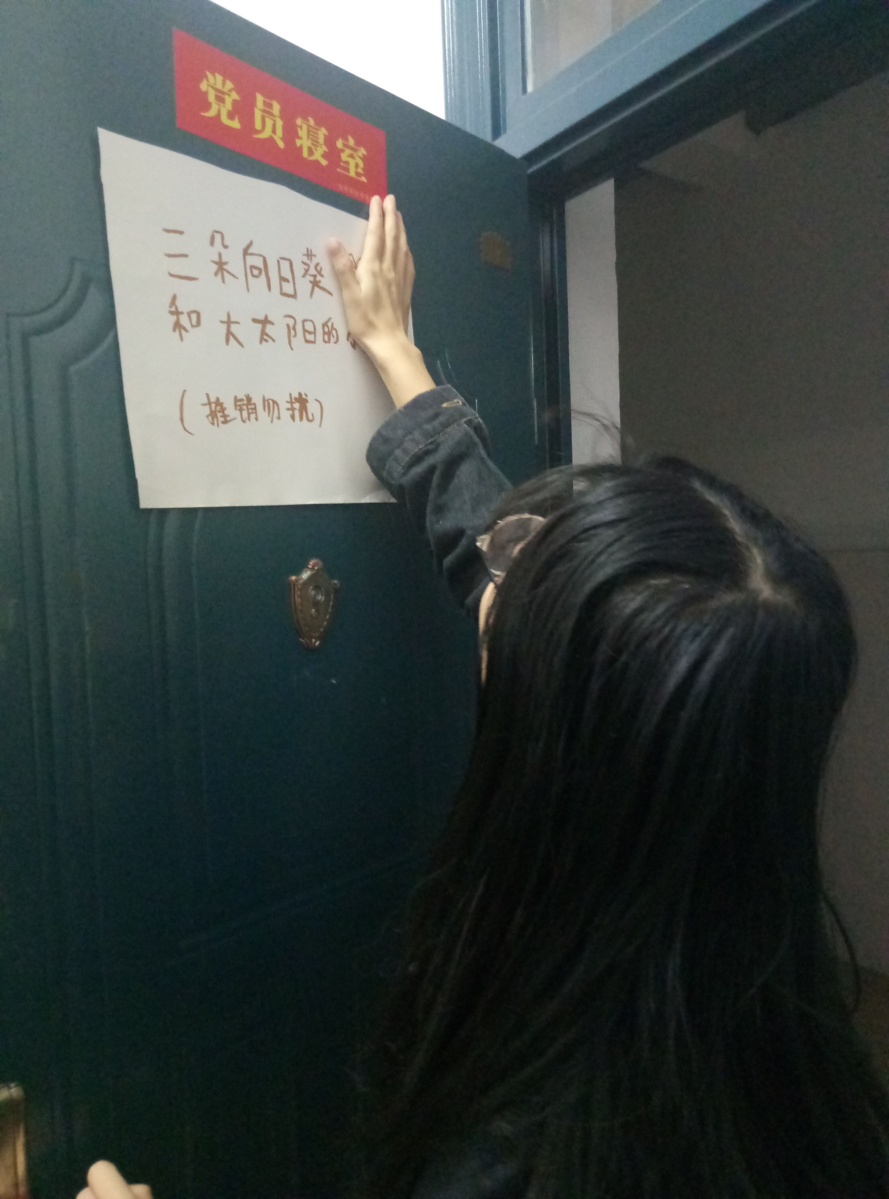 为进一步发挥学生党员的先锋模范作用,增强学生党员的责任感与使命感,2018年10月31日晚,太阳成tyc33455cc学生党建会组织开展为学生党员寝室粘贴“党员寝室”标签活动。