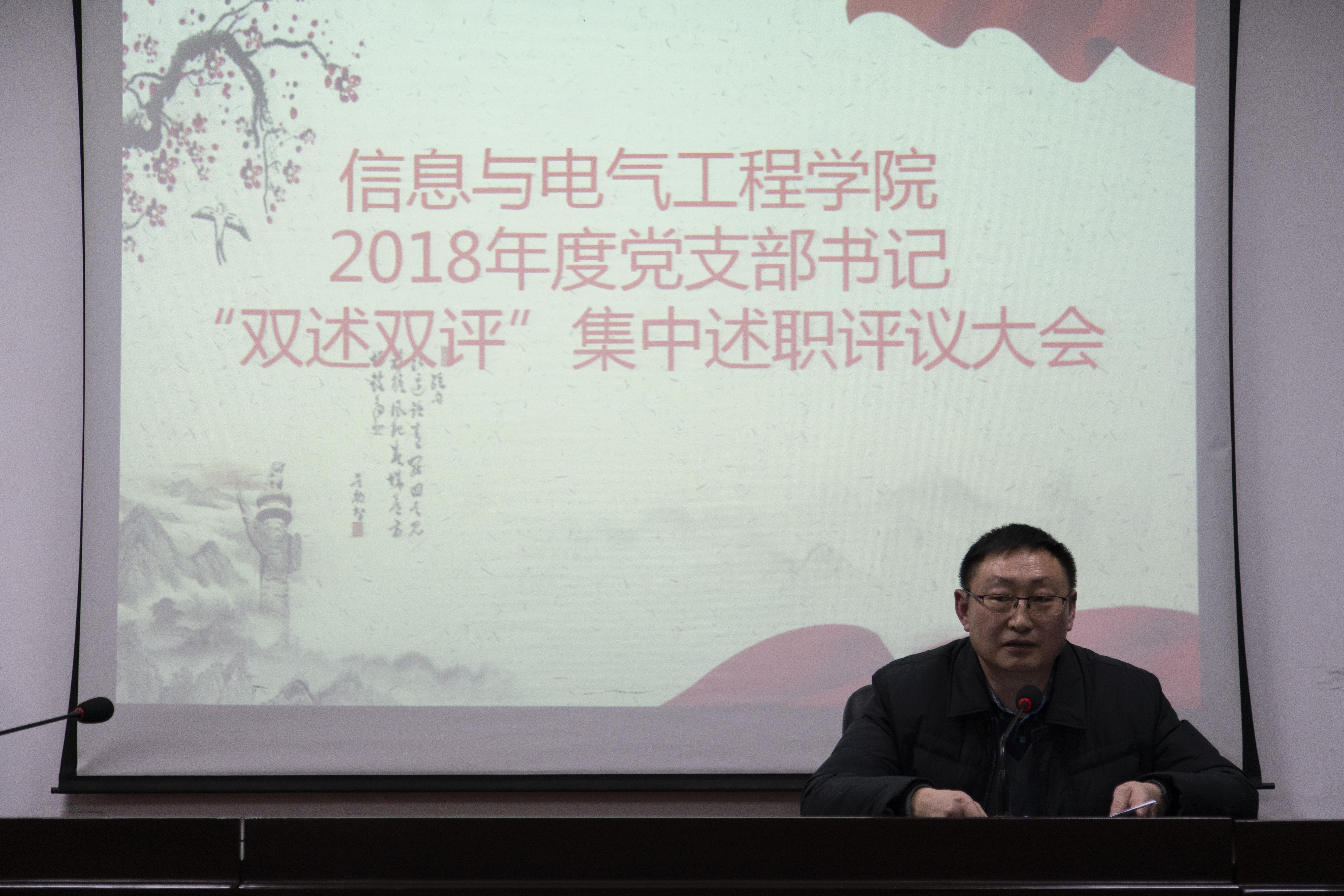 2月26日下午,学院2018年度党支部书记“双述双评”集中述职测评大会在信息楼417室召开。学院全体党委委员、党支部书记和党员代表参加会议。会议由院党委书记王鹏飞主持。