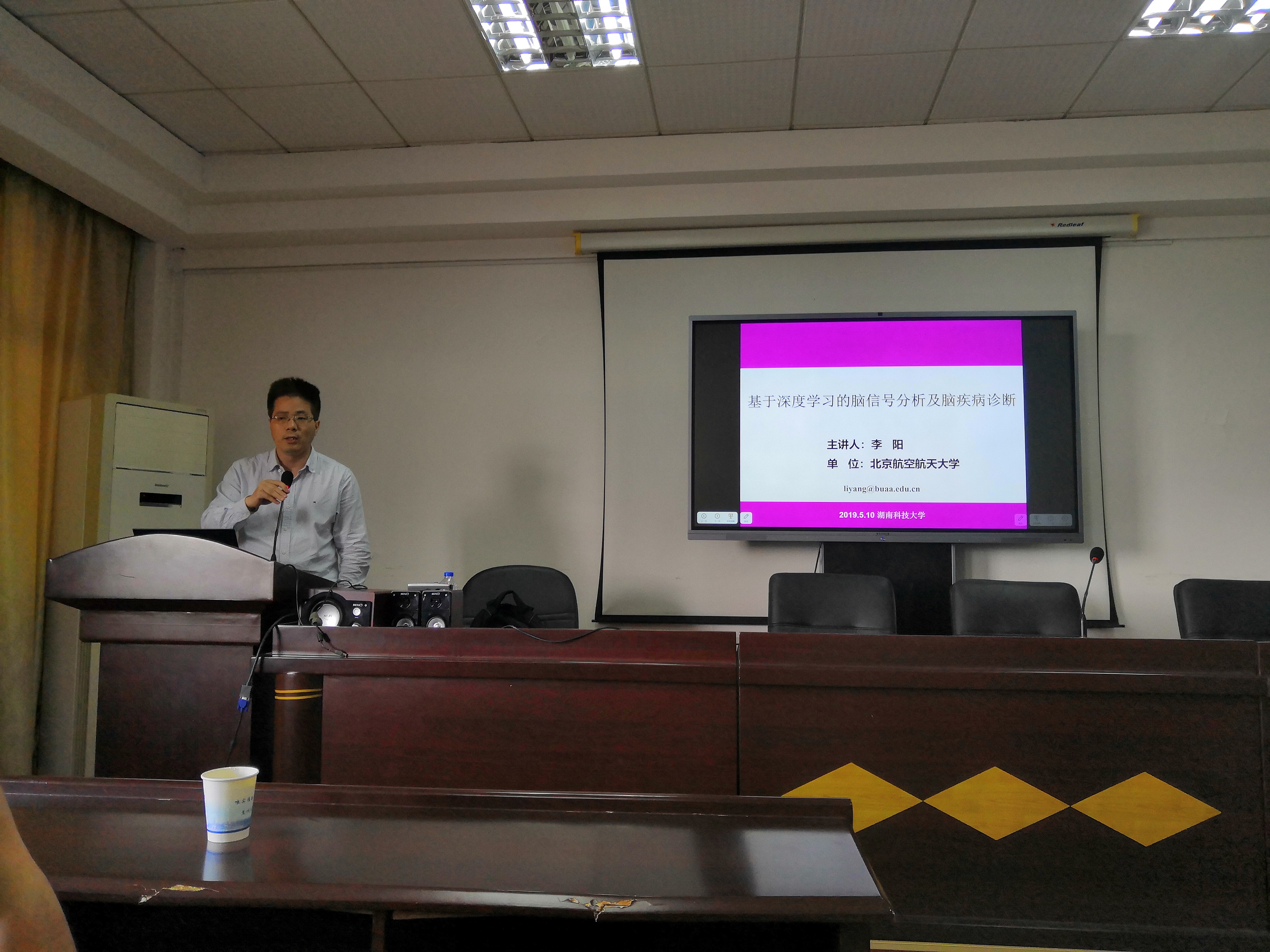 5月10日下午,北京航空航天大学李阳教授应邀来我院讲学,并于信息楼417学术报告厅作题为“基于深度学习的多模态网络学习与临床脑疾病辅助诊断”的学术报告,报告由周兰副院长主持,我校70余名师生参与本次学术报告。