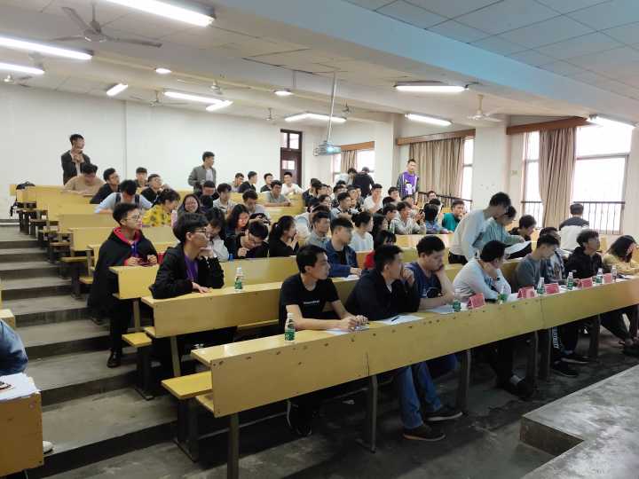 本次比赛共计72组报名参赛,最终依据比赛要求制作出实物并完成相应功能参与答辩的共有33组。答辩会伊始,赞助方深铭易购商务有限公司代表蔡铭淮上台致辞,他表达作为嘉宾参与此次比赛的兴奋之情,希望双方能共同协作共同成长,并祝贺本次电子电路创新大赛能够顺利进行。在主持人宣读比赛的题目和答辩要求后,各位参赛选手依次上台对自己的作品进行原理讲解和实物效果展示,并回答评委的提问。在众多的参赛作品中有30组作品脱颖而出,其中由17级通信工程二班邓入京制作的“基于stm32语音控制平衡车”吸引了大家的目光,这款车通过精准辨别控制者下达的语音命令来实行一系列的动作演示,其创新性与灵活性赢得了在场所有人的喝彩。