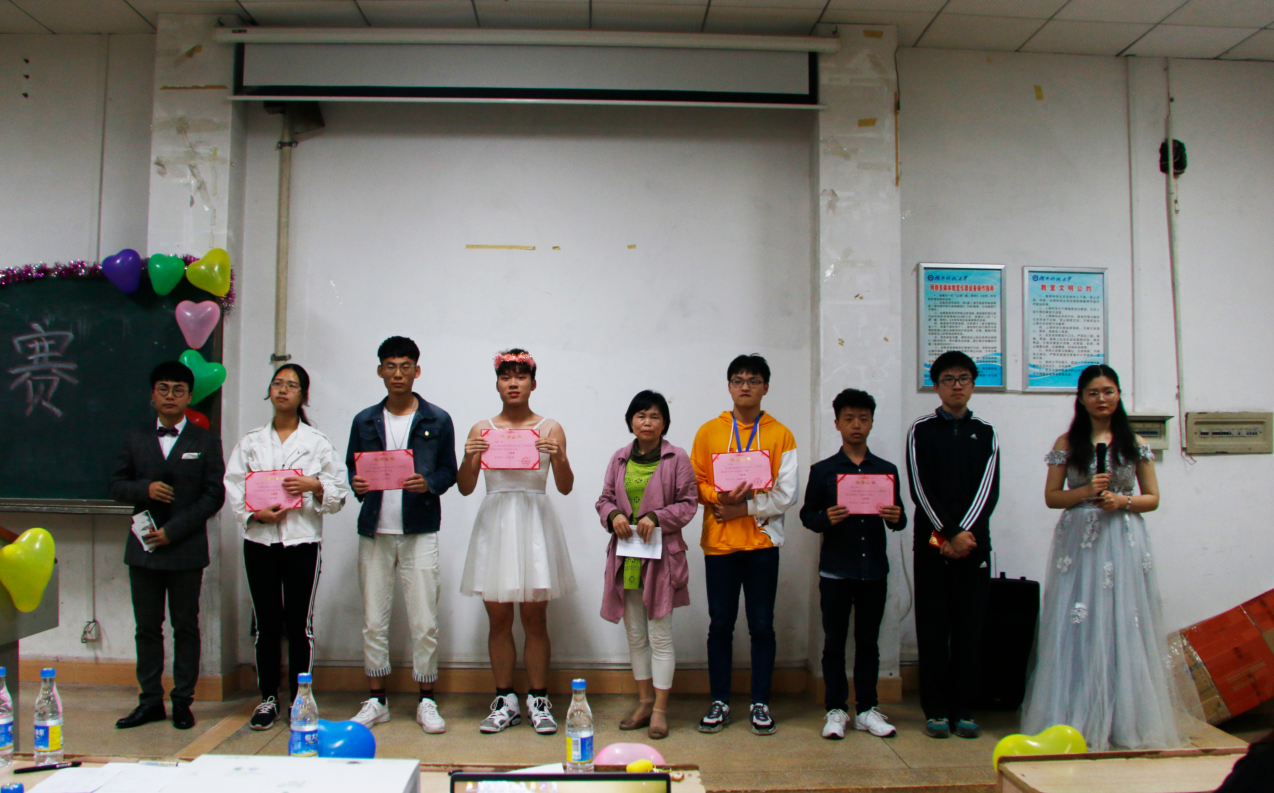 最后,两位老师对此次活动表示赞许,认为同学们的表演让人惊喜,同时她们也希望我们应争取做到让所有班级都能主动参加此类与学风建设有关的活动。