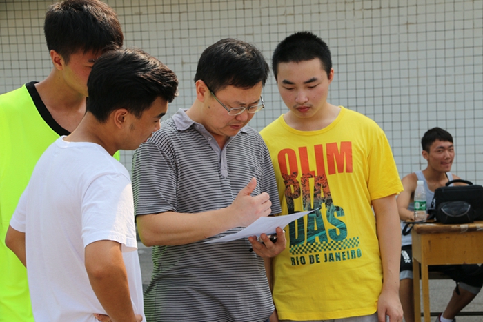 第一场小组循环赛,将电气、自动化、电子及通信四个专业分别分为A、B、C、D四个小组。循环赛决出四个小组的前两名进入八强赛。信息学院党委副书记李宁在现场观看比赛时说到:“看着同学们在场上这样挥汗如雨,为了班级的荣誉拼尽全力,我很欣慰。在大学里同学们应该要德智体美全面发展,迎新杯能引导同学们走出寝室、走向校园。希望迎新杯能够促进同学与同学、班级与班级之间的友谊,更希望同学们能够在大学里锻炼身体,拥有健康的体魄才能更好的学习。”