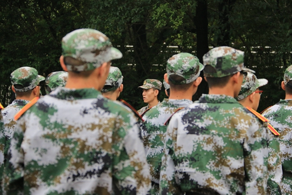也许老天爷也要考验同学们的意志,本来几天来凉爽的气温正逐步回升,下午久违的太阳也露出了云层。可是在站军姿的时候同学们仍不为所动,阳光下同学们矫健的身姿更显挺拔。休息时间时有一个男生向记者说道“这样的小太阳不算什么,但就像教官们所说,这正能锻炼我们的意志,我已经做好准备了,就算再大太阳也不能打倒我们。”