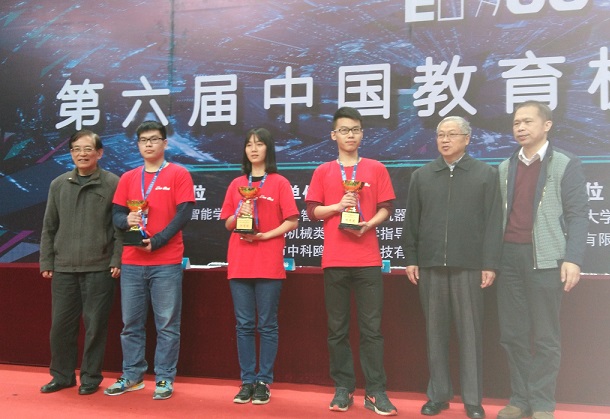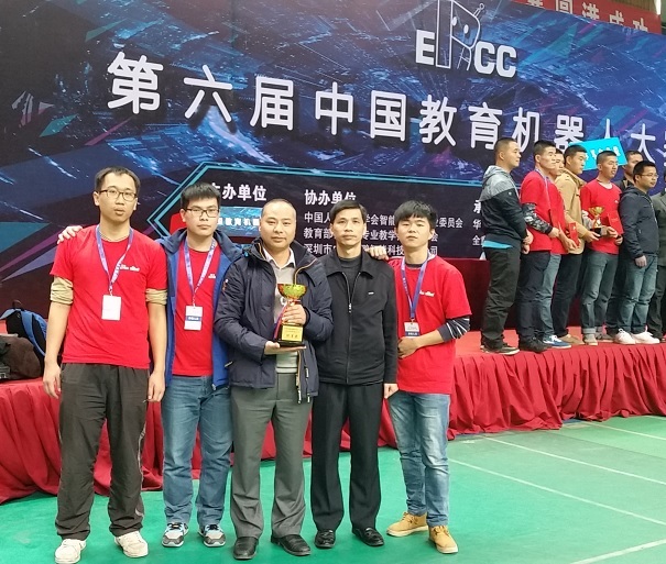 2016年11月11日-13日,由中国人工智能学会主办,华中科技大学承办,中国人工智能学会智能机器人专业委员会、教育部机械类专业教学指导委员会、深圳市中科鸥鹏智能科技有限公司协办的2016第六届中国教育机器人大赛在湖北武汉华中科技大学光谷体育馆举行,我校由曾照福、吴亮红老师指导的夏龙广、农广瑞、景佳宝三位同学组成的代表队喜获机器人游中国高铁项目全国特等奖,总分排名第一;由罗财、罗文健、戈鑫三位同学组成的代表队获机器人游中国高铁项目全国一等奖;由王冉冉、周克贤、李会朋三位同学组成的代表队获智能搬运项目全国一等奖。