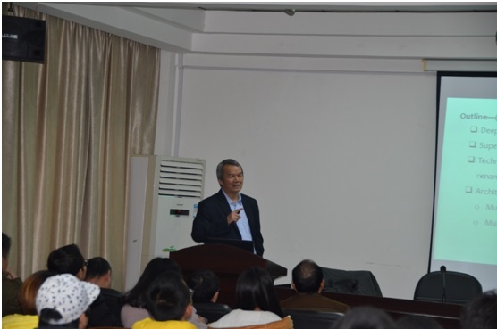 首先,Han-Way Huang教授从ARM处理器的发展史和市场现状谈起,介绍了ARM处理器取得成功的原因,包括移动设备的日益普及、低功耗、良好的性能以及它的商业模式。Han-Way Huang教授旁征博引、化难为简,对ARM处理器的性能及提高性能的方法以及它的具体的一些应用实例进行了深入浅出的讲解。最后Han-Way Huang教授对明尼苏达州立大学的招生情况及相关条件进行了介绍,期待更多的青年学生去学习深造。报告结束后,与会教师和学生就报告内容与Han-Way Huang教授进行了友好的互动交流。最后,周少武院长感谢Han-Way Huang教授给师生们带来了精彩的学术报告,并希望师生们多感受国外讲座的氛围,在教学和学习中主动与国际接轨。