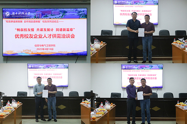 为开拓就业实习基地,促进学生实习就业,学院与校友企业家还就人才供需开展了深入交流,各位校友对企业建设背景、运营模式、运作机制等方面作出汇报,阐明用人需求和相关合作事宜。卢明对校友企业取得的成绩表示高度肯定,并围绕深化校企合作的具体方式和合作项目提出构想,对双方开展深层次的持续性合作做出展望。经过洽谈,学院与湖南东瑞投资置业有限公司等7家校友企业达成合作意向。