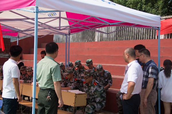 吴亮红、王鹏飞首先来到休息服务区看望因身体原因不能参加军训的同学,与他们进行了亲切交流,仔细询问这些同学有哪些不适,是否有去就医等。对训练中的同学予以了肯定和鼓励,高度评价了同学们这些天来所取得的军训成果。他表示,军训虽然辛苦,但作为信息学院的学生,希望大家能够在军训当中不断成长,锻炼身体、磨炼意志、养成良好的习惯,继续展现出严谨认真的训练作风和积极向上的精神风貌。