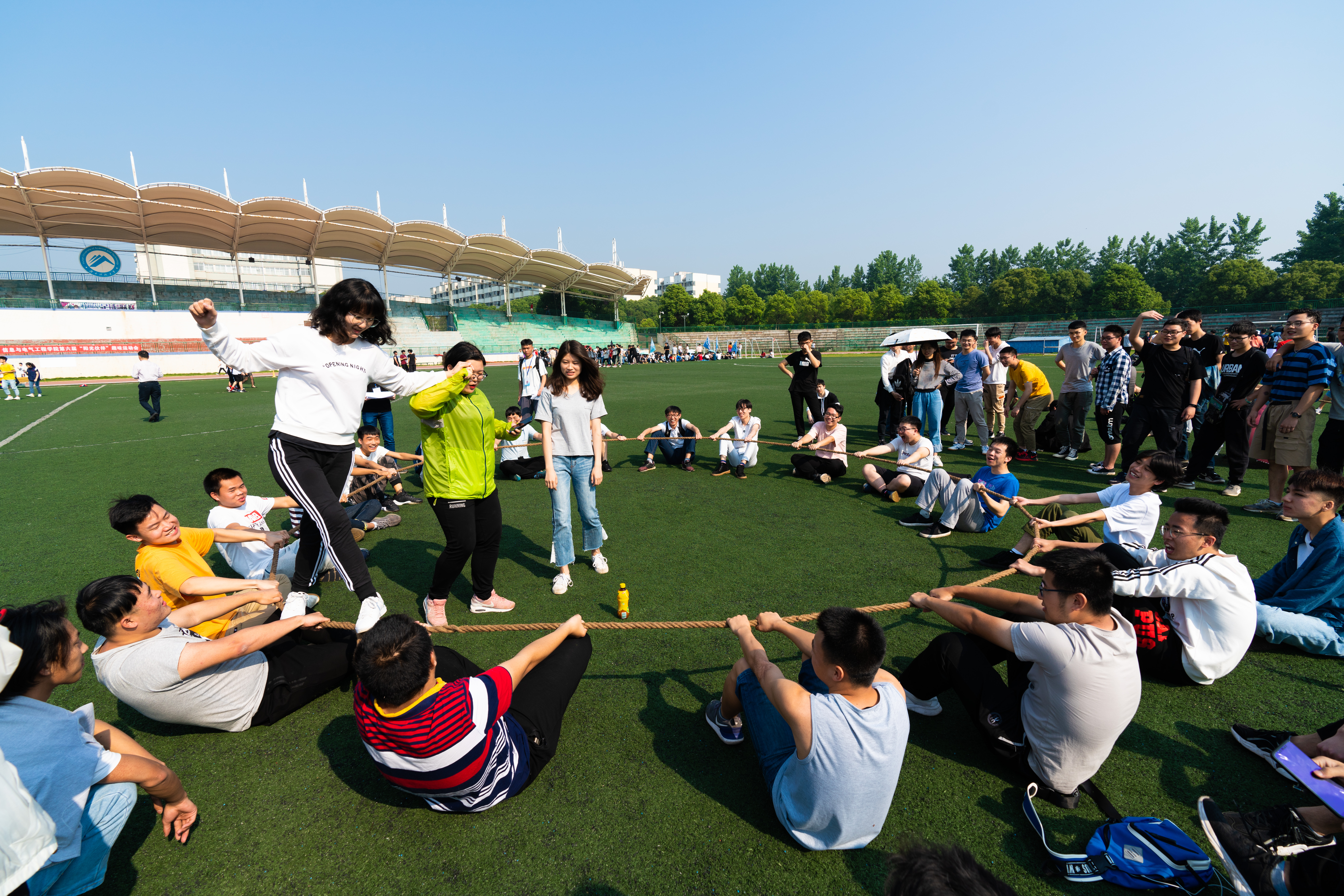 “拔河”比赛中,选手们都铆足了劲,他们有的“青筋暴起”,有的“咬牙切齿”,只为让绳的中部离自己更近些。在旁的同学们也没闲着,他们奋力地为选手们呐喊助威,仿佛在场上比赛的正是自己。