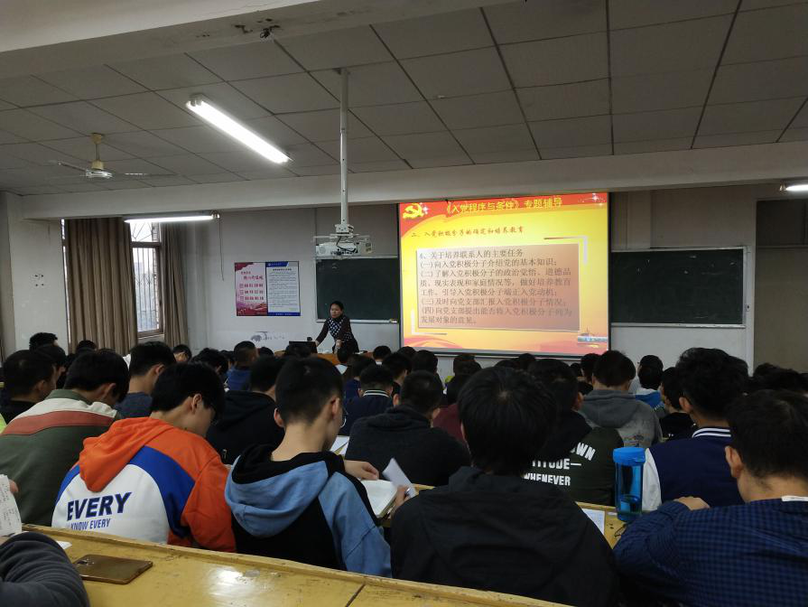 肖善芳对学生入党的入党资格要求、入党政治审查与入党申请书的提交等问题做出了详细解答,她再次说明了入党基本条件与硬性要求(英语四级、计算机二级),嘱咐同学们要坚持不懈的学习。她还提到,如果在学校未曾入党成功,可以保留记录,日后在单位可以继续入党。