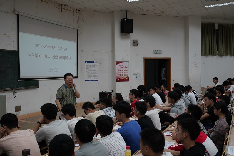4月26日19:00,信息与电气工程学院党委副书记李宁在第五教学楼2-3教室为学院第36期入党积极分子培训班学员讲了题为《深入学习十九大,全面贯彻新思想》的党课。第36期入党积极分子培训班全体学员参加了学习。