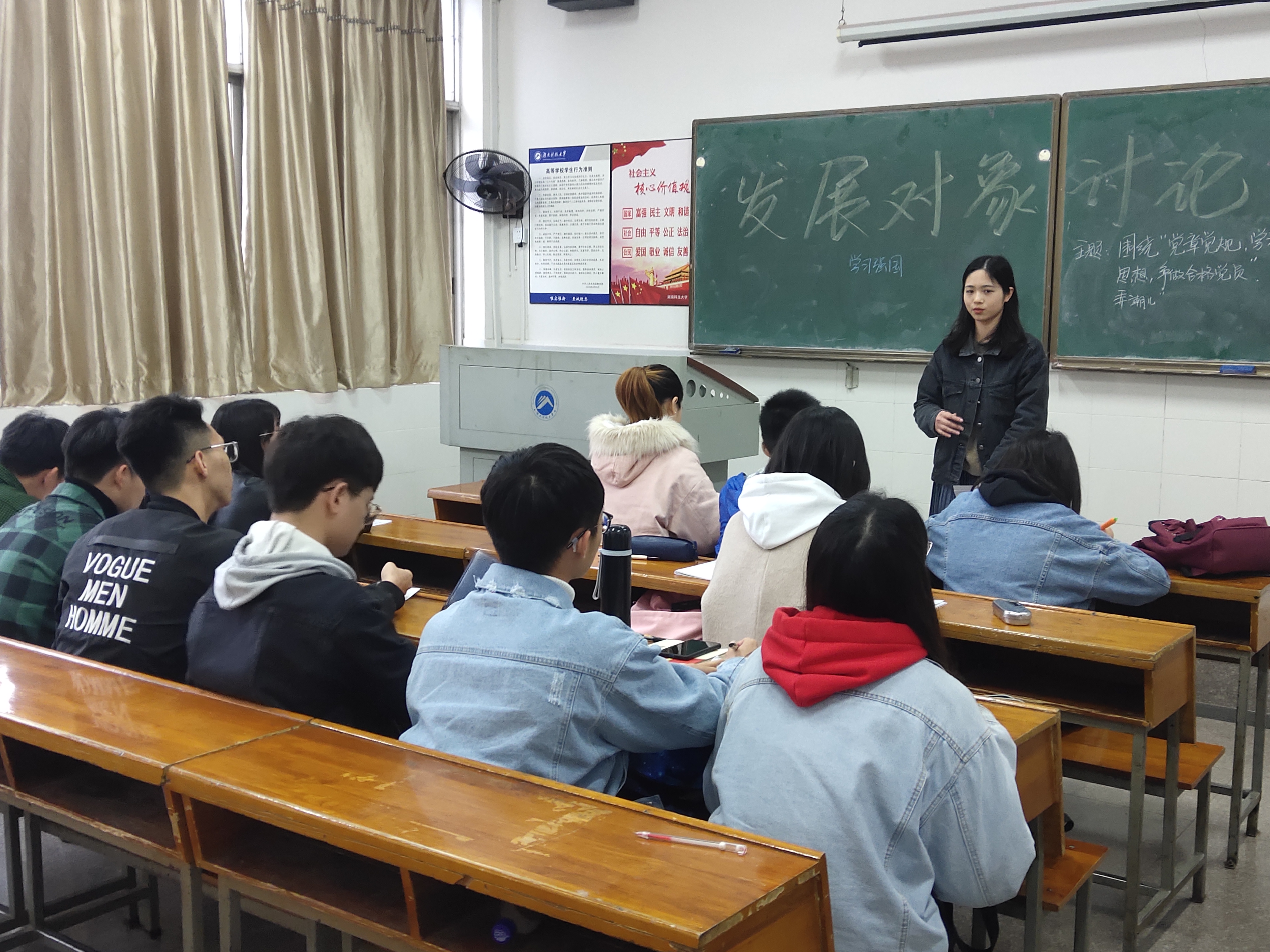 发展对象们踊跃发言,都表达了自己的观点,如邓慧姣同学发表了“向优秀党员学习,向党组织靠拢,通过自己的行为去帮助他人影响他人”、占志龙同学发表了“做好榜样,忠于奉献,为人民服务”等自己的入党动机,并由党员向其提问。这次的活动让发展对象领悟了党性修养,坚定了入党的信念,增强了向优秀党员学长学姐学习的动力。